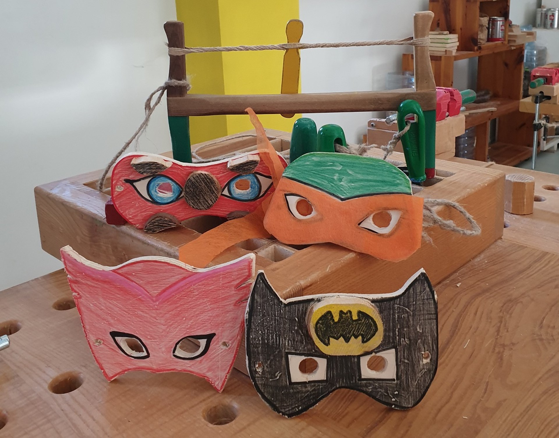 Le famiglie vengono accolte nello spazio espositivo e i bambini saranno invitati a riflettere sulla differenza tra gli eroi di ieri e di oggi. Successivamente i giovani visitatori potranno mettere alla prova le loro capacità creative e manuali nella Falegnameria Didattica per creare con il legno la mascherina di carnevale del loro eroe preferito.
