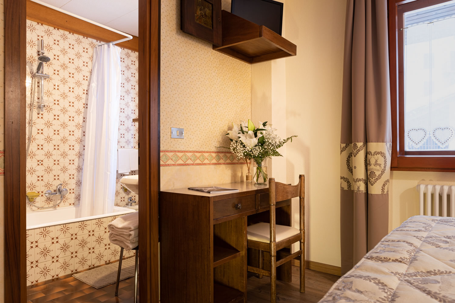 Sie wenden sich nach dem Stoppschild nach rechts und biegen wenige hundert Metern weiter, kurz vor dem Zentrum von Saint-Vincent bei der Abzweigung erneut nach rechts (Ausschilderung Cervinia), um durch die Unterführung auf die Bundesstraße 26 zu gelangen, die in Richtung Châtillon verläuft. Folgen Sie dieser Bundesstraße etwa einen Kilometer bis zum Kreisverkehr, von dem rechts die Landstraße nach Valtournenche und Cervinia abgeht. Bleiben Sie auf dieser Straße, kommen Sie an der Ortschaft Antey-Saint-André vorbei und erreichen Valtournenche. Das Hotel befindet sich im Zentrum, direkt hinter der Serpentine, rechts an der Hauptstraße.