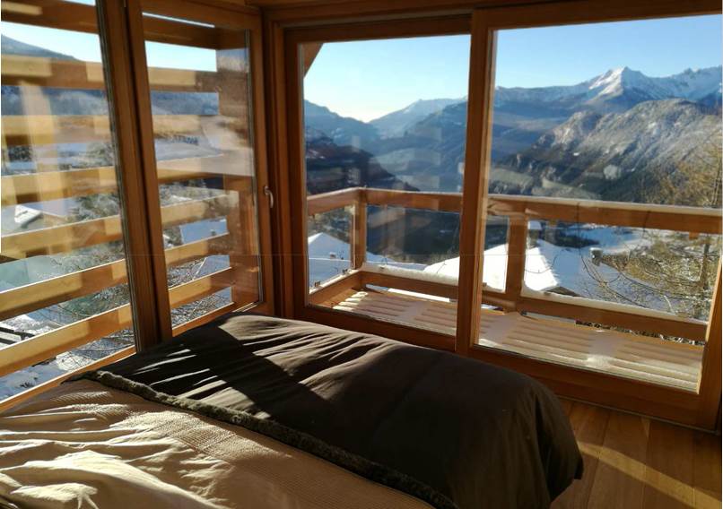 The chalet is mainly exposed to the south, with a view of the valley below and of the regional capital with the lowest hamlets of Torgnon. It features decks and sun terraces in larch wood, an outdoor lawn and a convenient laundry room and storage for the winter season.
