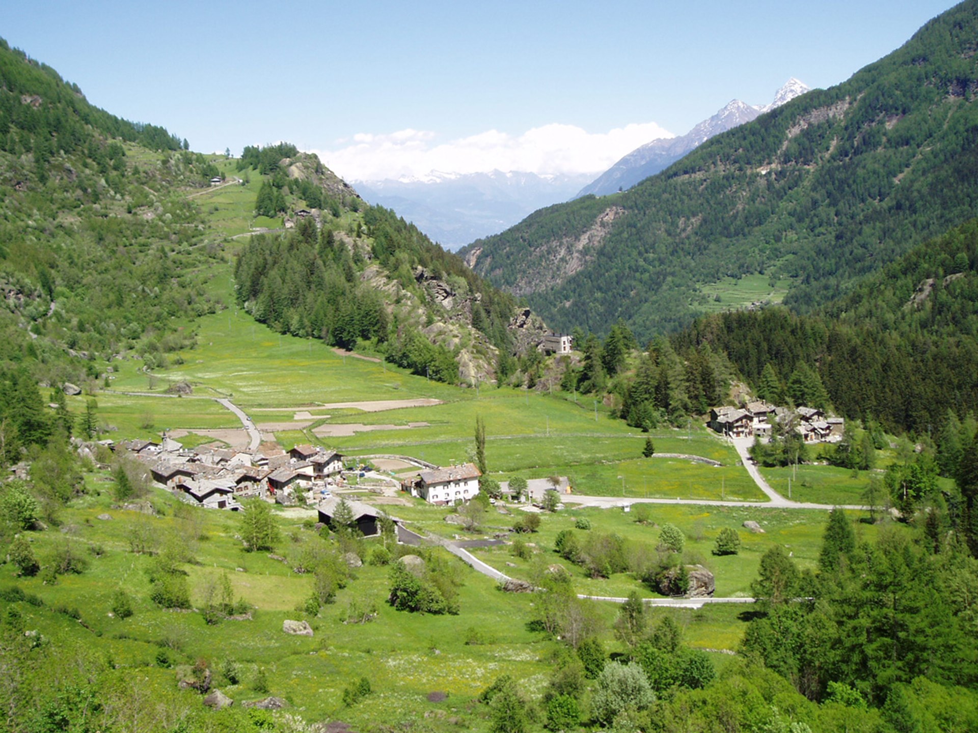 Die Strecke führt über die Weiden weiter abwärts bis sie auf die Überreste der Alm Bénévy trifft, worauf sie in einen lichten Wald eintaucht, um dann ein wenig weiter oben an einer Kehre in die Asphaltstraße nach Planaval zu münden.