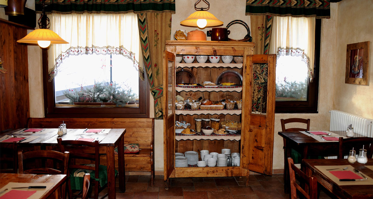 Breakfast is served in the “saletta”, the guests day-room, furnished in typical alpine stile. Fresh homenade jams and cakes are always included in the choices from the self-service buffet. Throughout the day at the hotel bar, you can choose from a wide selection of sandwiches, toasted, focacce and salads. Cakes and ice-cream are fresh from the family kitchen.