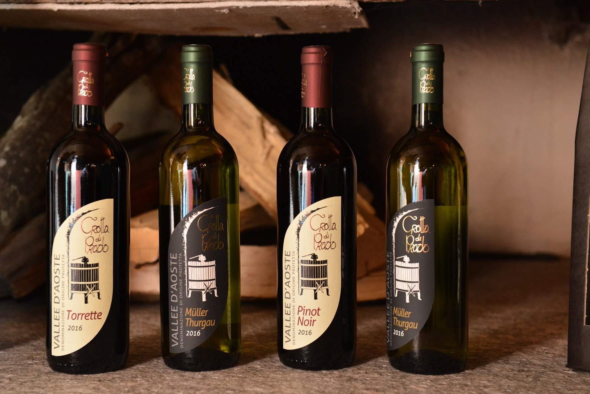 The types of wine produced are all certified controlled designation of origin. Are produced three red wines as the Torrette (80% Petite Rouge vinesplus another 20% autochthonous vines such as Fumin, Premetta, Cornalin), 100% Gamay and Pinot Noir and three white wines as Pinot Gris, Gewürztraminer and Müller Thurgau , all 100%.