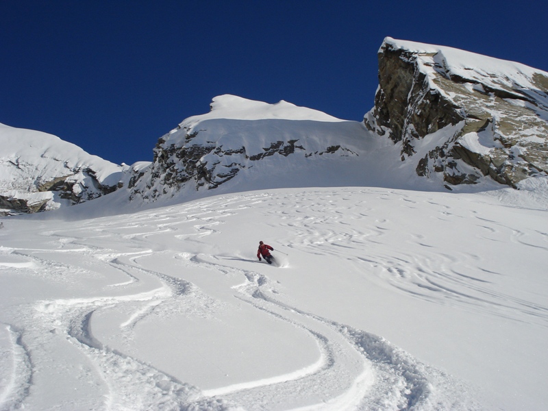 Programme: 8.30 a.m. - Departure by cable car to Plateau Rosà and take off towards Monte Rosa to make the descent to Zermatt along one of the largest and most spectacular glaciers in Europe: the Monte Rosa Gletscher (approx. 16 km). Return to Cervinia with the Swiss ski lifts. (not included). Price includes: helicopter flight, accompaniment by mountain guide, safety equipment, use of avalanche transceiver.