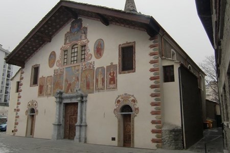 Turning left and following Via Festaz, you will arrive in the vicinity of the church, in the area once occupied by the Priory of Saint-Bénin with the annexed male college, one of the most popular of the Savoy states. Then travelling along Viale Conseil des Commis formally piazza Chanoux, you would never image that, where today you find the monumental Hôtel de Ville (town hall), up until the end of the 18th century there stood one of the biggest and most beautiful gothic churches in the north-east of Italy, part of the convent of St. Francis, constructed in 1352 by Amedeo VI of Savoy. Initially transformed into barracks, in 1836 the convent was completely destroyed in order to build the modern neoclassical town hall; only a ten-sided gothic chapel now remains, incorporated into Caffè Nazionale.