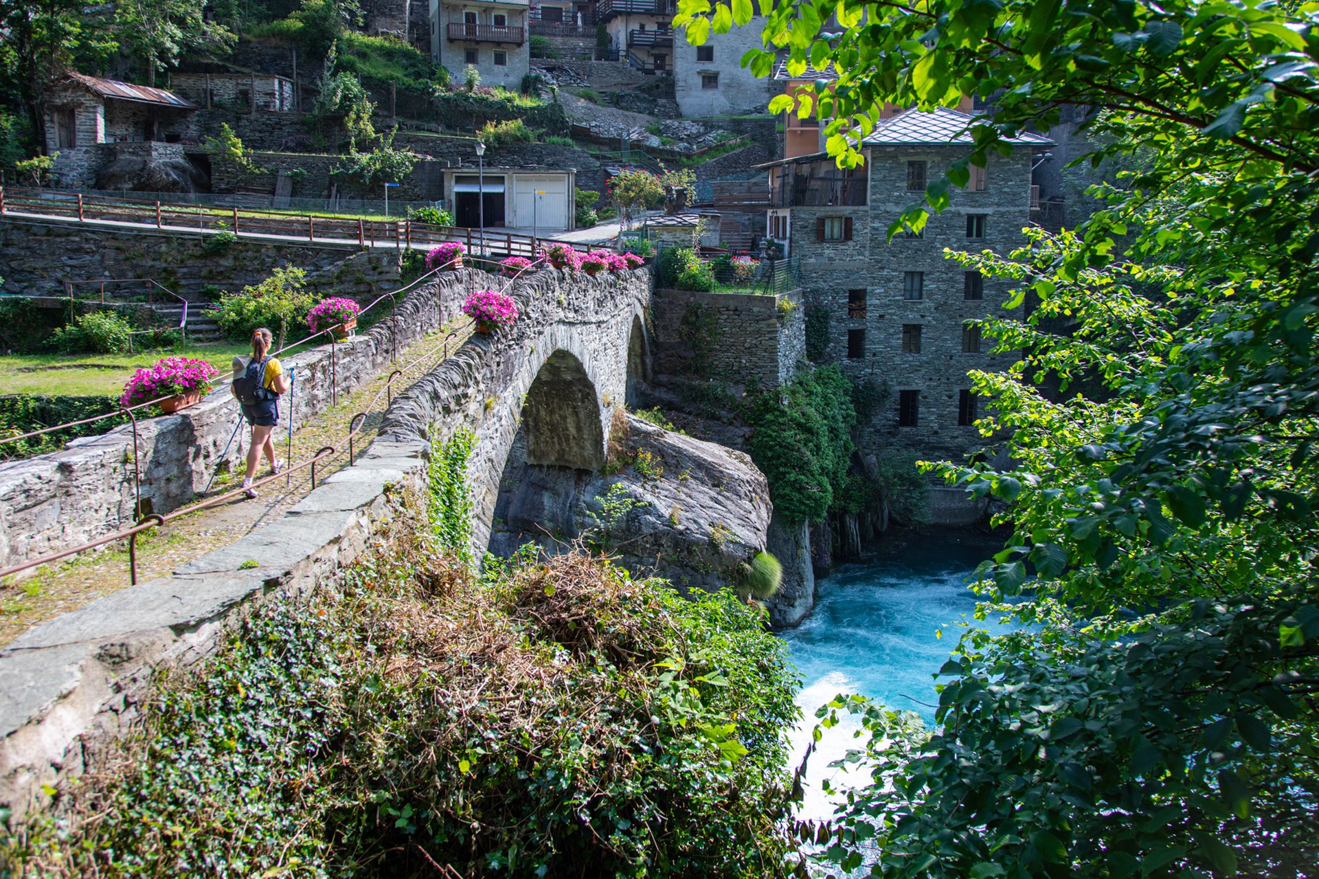 En un valle rocoso e irregular como el de Champorcher, no eran sencillas las comunicaciones de una margen a la otra de los torrentes. Apoyando las fundaciones de los puentes sobre precipicios rocosos por encima de aguas tumultuosas, los maestros constructores de los siglos XVII y XVIII edificaron obras de arte que resisten aún hoy las crecidas más impresionantes.