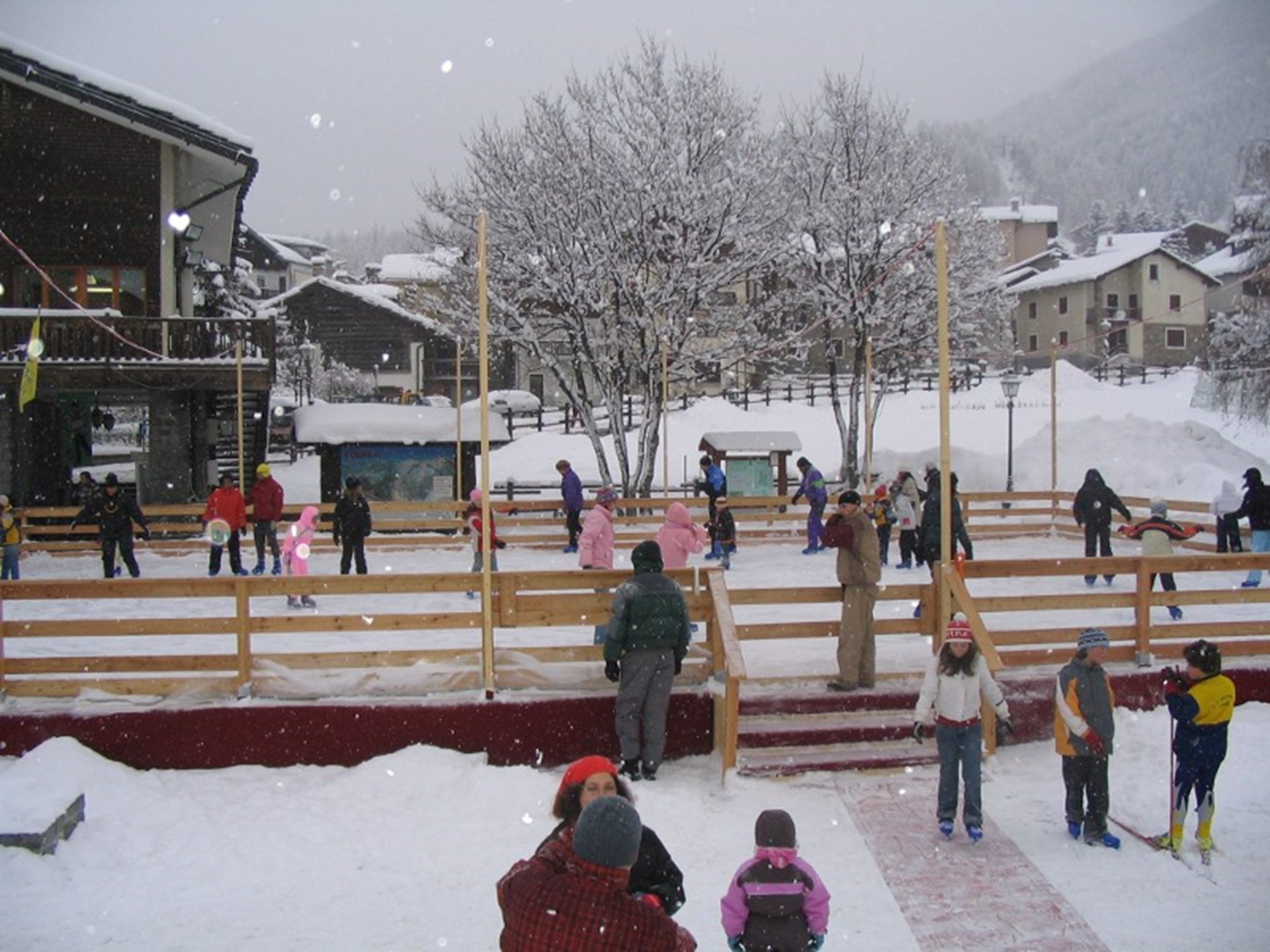 Una pista con iluminación en Plaza E. Chanoux para pasar los dias en buena compañía y divertirse.