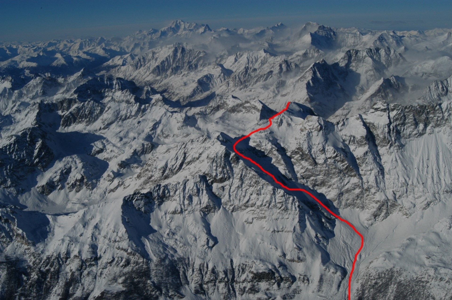 Desde la Cava di Vofrède (1950 m), dirigirse hacia el oeste y, con un recorrido libre, llegar al bien visible canal situado en la base del Mont Blanc du Créton. Remontarlo hasta donde se vuelve más estrecho y después girar a la izquierda franqueando la morena. Subir el segundo canal hasta la base de la pared rocosa del Mont Rous; después, girar a la derecha y, bordeando la cresta, situarse en la base del estrecho canal donde hay que dejar los esquís. Subir a la cresta y avanzar por su filo en dirección norte hasta llegar a la cima.