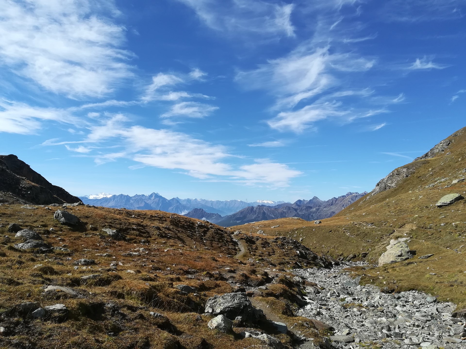 Continuar por el sendero hasta llegar a un cruce. Ignorar, a la izquierda, el sendero n. 26 a la punta Aran; continuar por el ramal derecho, n. 29, que entra en el valle glacial, cerrado por el Monte Roisetta (al norte) y el Grand-Tournalin (al sur).