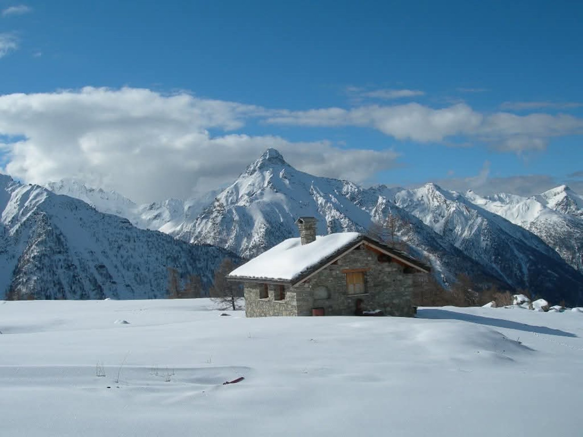 Desde Chez les Chenaux, continuar en dirección oeste por una carretera nevada. Bordear la ladera siguiendo varios impluvios y, unos 45 minutos después, se llega a Grand Rond. Aquí hay que abandonar la pista y continuar hacia la derecha adentrándose en el bosque y remontando una corta pendiente hasta llegar a otra pista: en este tramo, orientarse puede resultar un poco difícil, porque no hay trazado. Continuar hacia el norte hasta llegar a la pista que procede de Ruz, en las inmediaciones del arroyo Moulin. Girar a la derecha y, sin abandonar la pista, llegar al poyo que está antes de la meta. Al salir del bosque, se vislumbra ya la alzada: continuar en línea recta hacia el Alpe Berrier disfrutando de las interesantes vistas de la Becca di Luseney, que no está lejos.