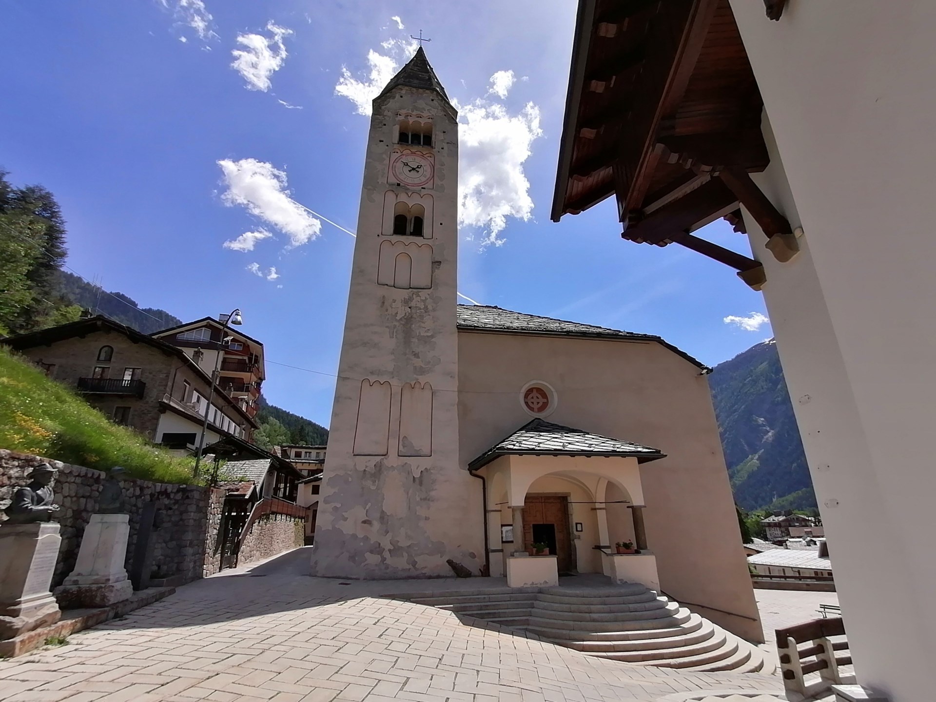 Una inscripción en la capilla situada a la izquierda del coro recuerda la estancia en Courmayeur del príncipe Umberto de Saboya y la princesa María José en luna de miel en 1930.