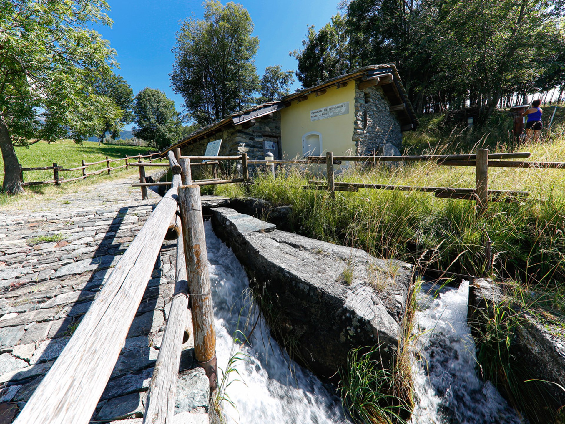 Après des années de négligence, le moulin a été restauré. Dans l’angle du bâtiment, adossé au mur, on aperçoit une vieille meule.