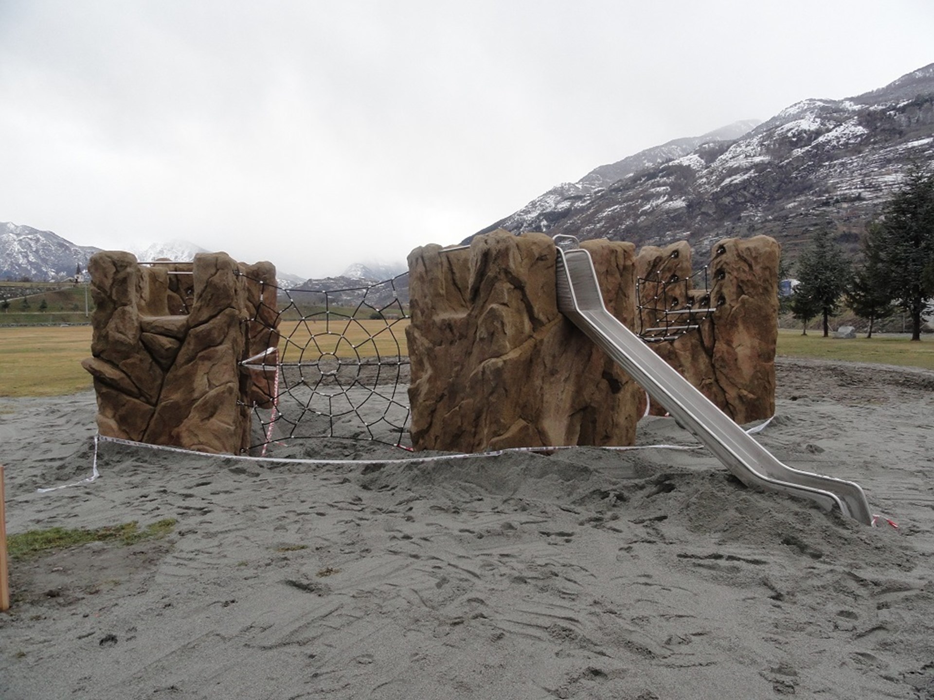 Les enfants peuvent s'amuser sur l'aire de jeux avec toboggan.