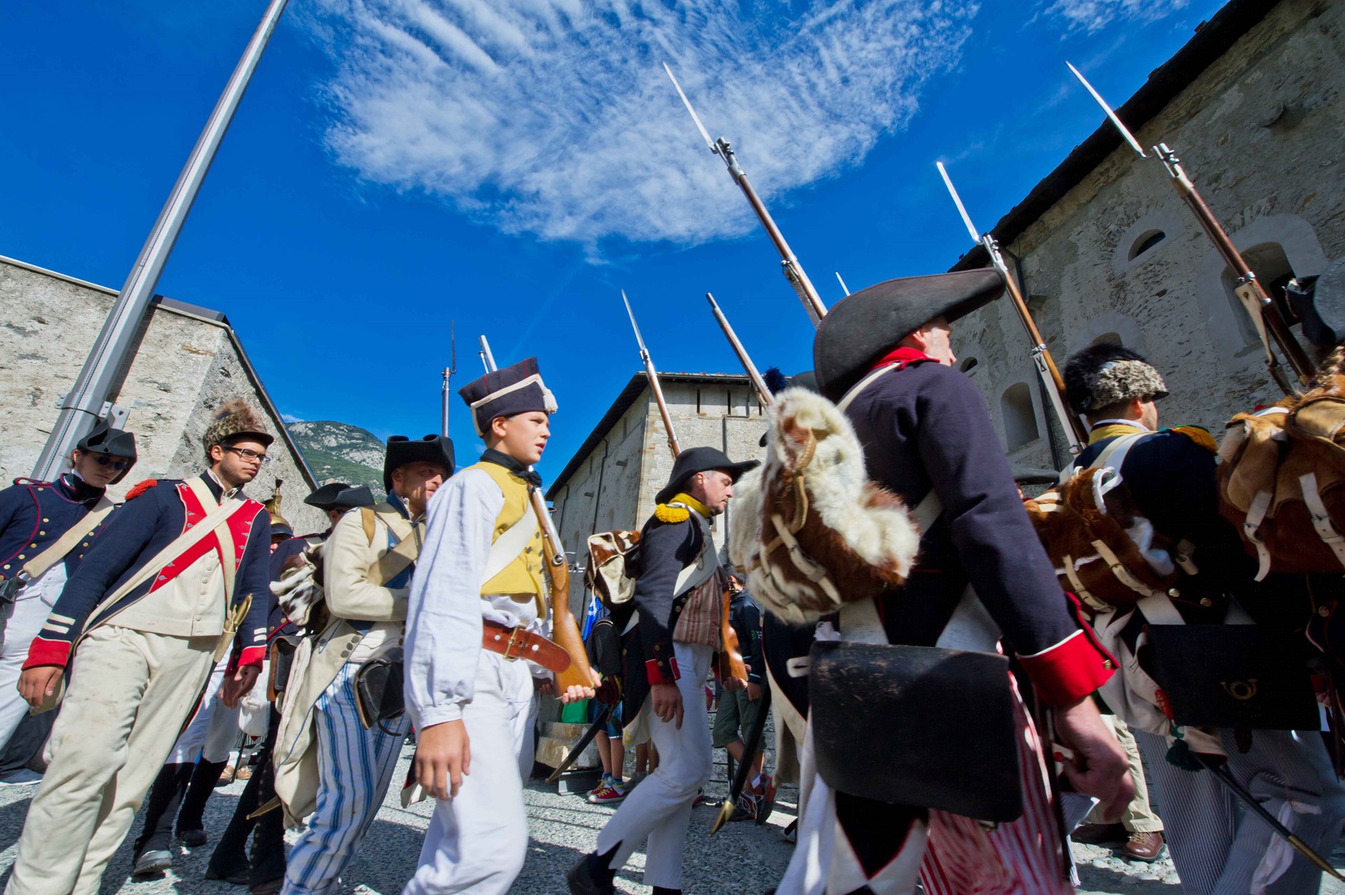 14h30 : Départ de la place du village de Bard : Déploiement et début de la bataille finale avec reconstitution des affrontements entre les troupes françaises de l’Armée de Réserve arrivant du village et les Austro-Piémontais défendant le Fort
