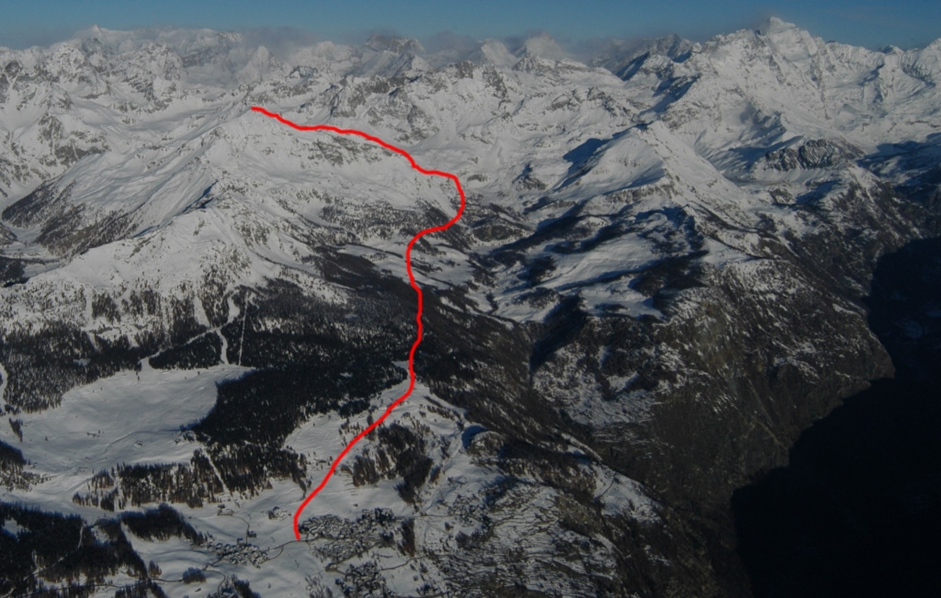 De l’agglomération de Pecou à 1650 m, commencer l’ascension le long de la diagonale en traversant de larges prés en direction du Nord, jusqu’au chemin carrossable à hauteur des alpages Châtelard à 1891 m. Commencer à monter sur la gauche en direction des alpages Château à 2084 m et Les Crotte de Loup à 2161 m. Remonter le vallon raide qui en peu de temps mène aux larges terrasses du dessus et rejoindre les alpages Erbion à 2522 m. Tourner en direction de l’Ouest, et le long d’une pente plus raide, se rendre sur la large crête. Ôter les skis et gagner la cime.