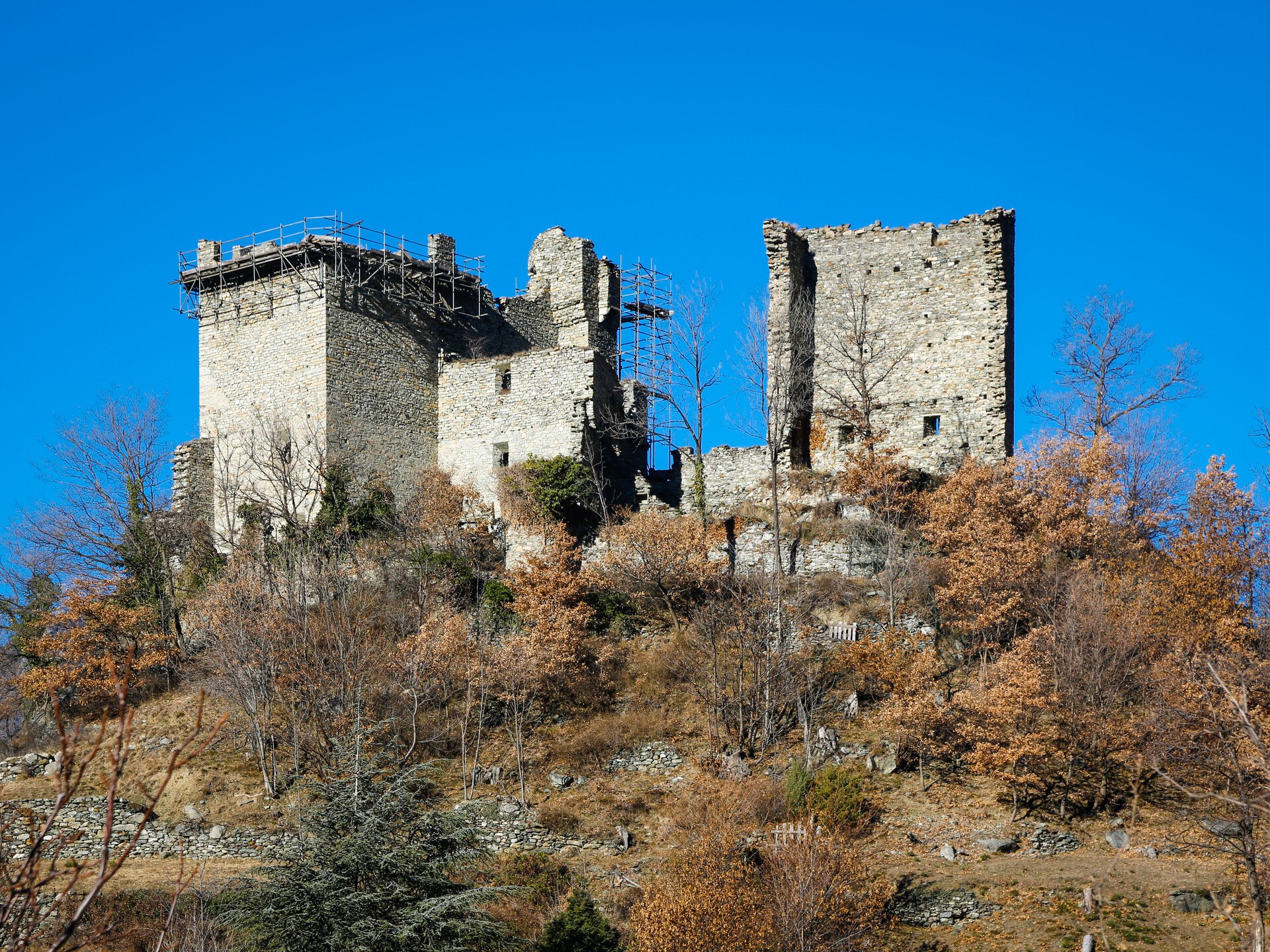 Bâti en position dominante sur le village, à côté du vallon de Machaby, le château est aujourd’hui en ruine.