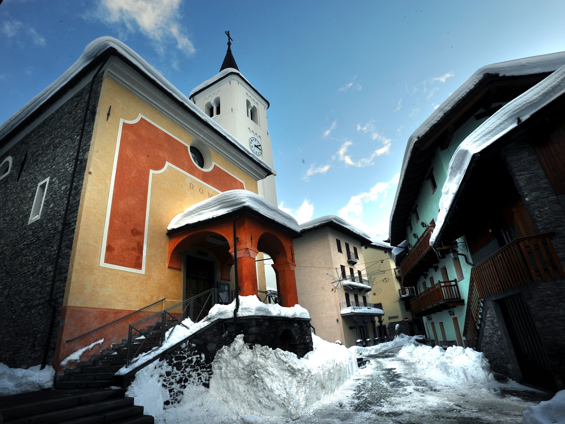Le tabernacle en bois doré, du XVIIIème siècle, provient du couvent de la Visitation d’Aoste, supprimé au début du dix-neuvième siècle. Saint Nicolas, patron de l’église et de la paroisse, est peint dans l’abside latérale gauche.