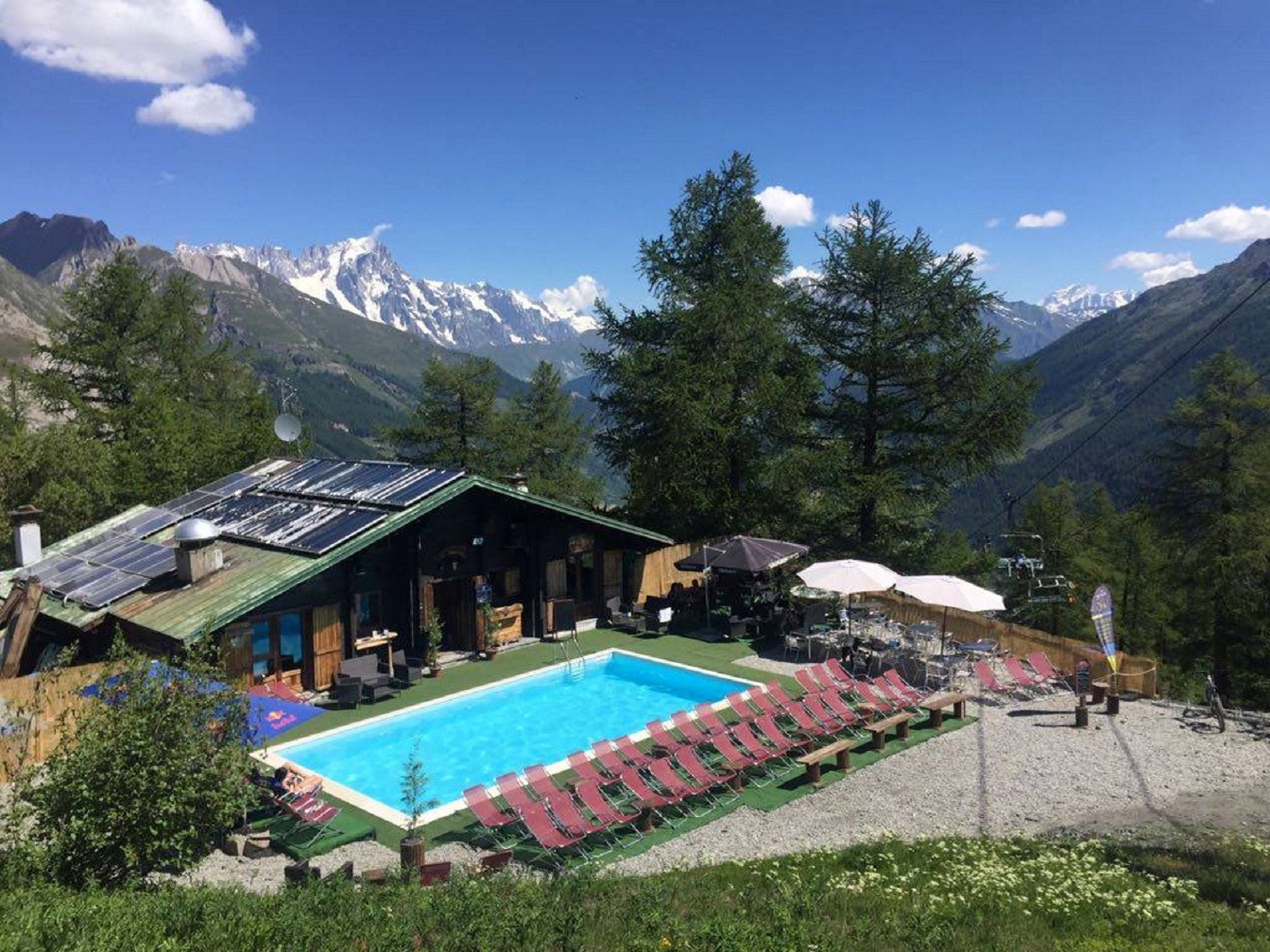 Piscine d’altitude chauffée en plein air en Loc. Les Suches dessous (2088 m). La piscine est accessible avec le télésiège Bosco Express, ouvert tous les jours à partir du 28 juin au 7 septembre 2025. Horaires du télésiège: 9h30 - 17h.