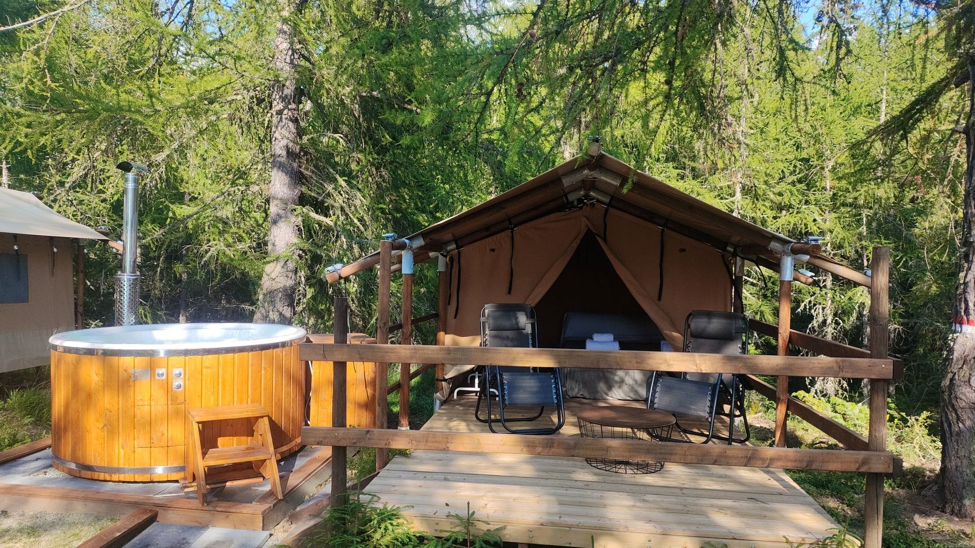 Nel prezzo, a persona, è compreso l'uso esclusivo della vasca idromassaggio (max 4 persone), della tenda, della merenda e dell'aperitivo con un calice di Prosecco.