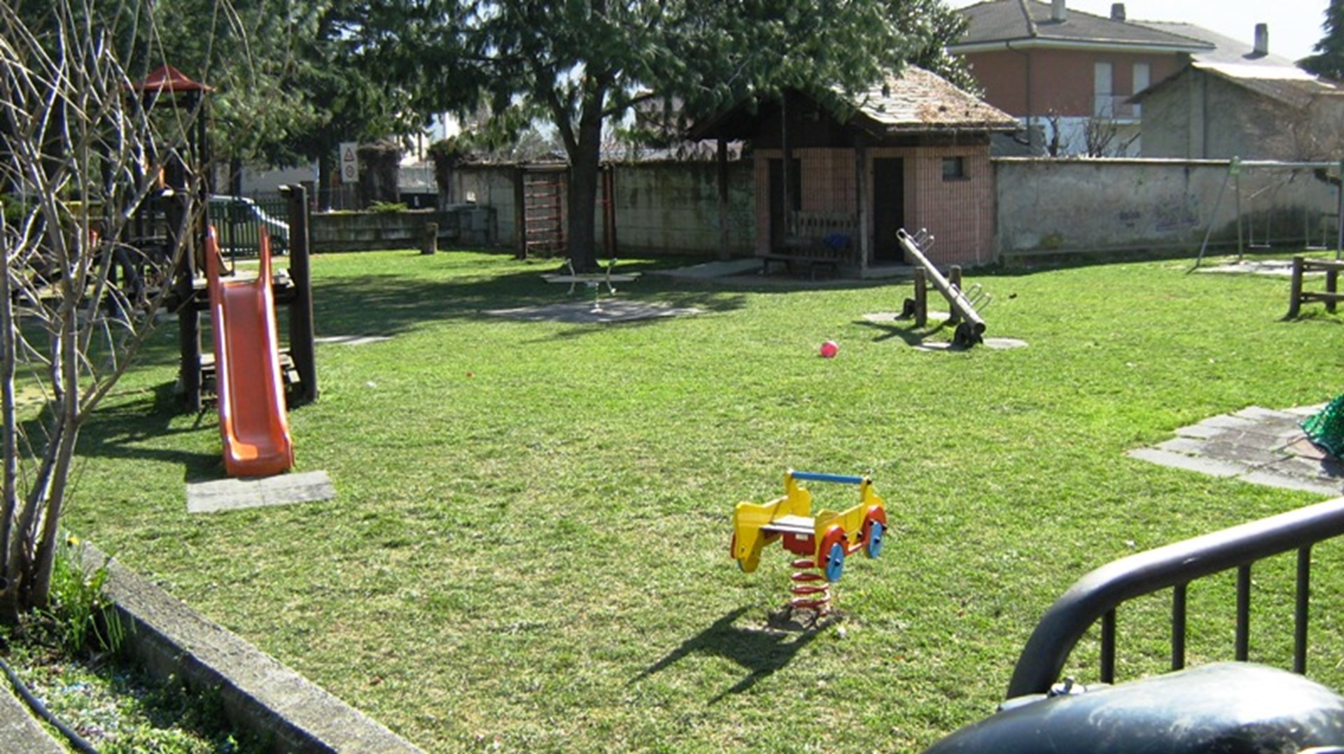 L’area si trova all’angolo di Via XXVI febbraio. L’intera area verde è calpestabile. Sono presenti 2 scivoli, 4 giochi a molle, 2 altalene, 1 gioco a dondolo.
