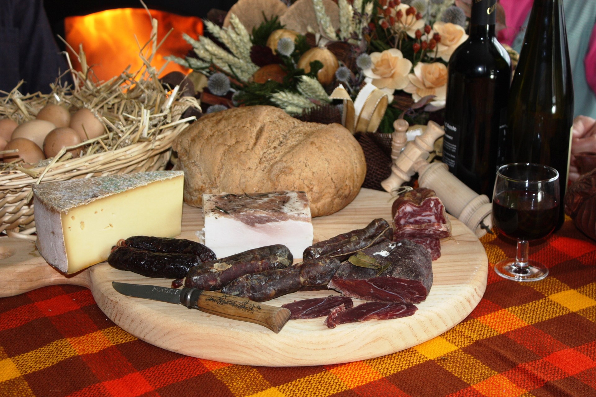 Hausgemachte Wurstwaren: Bratwurst, Blutwurst, Rohschinken und gepökeltes und luftgetrocknetes Fleisch