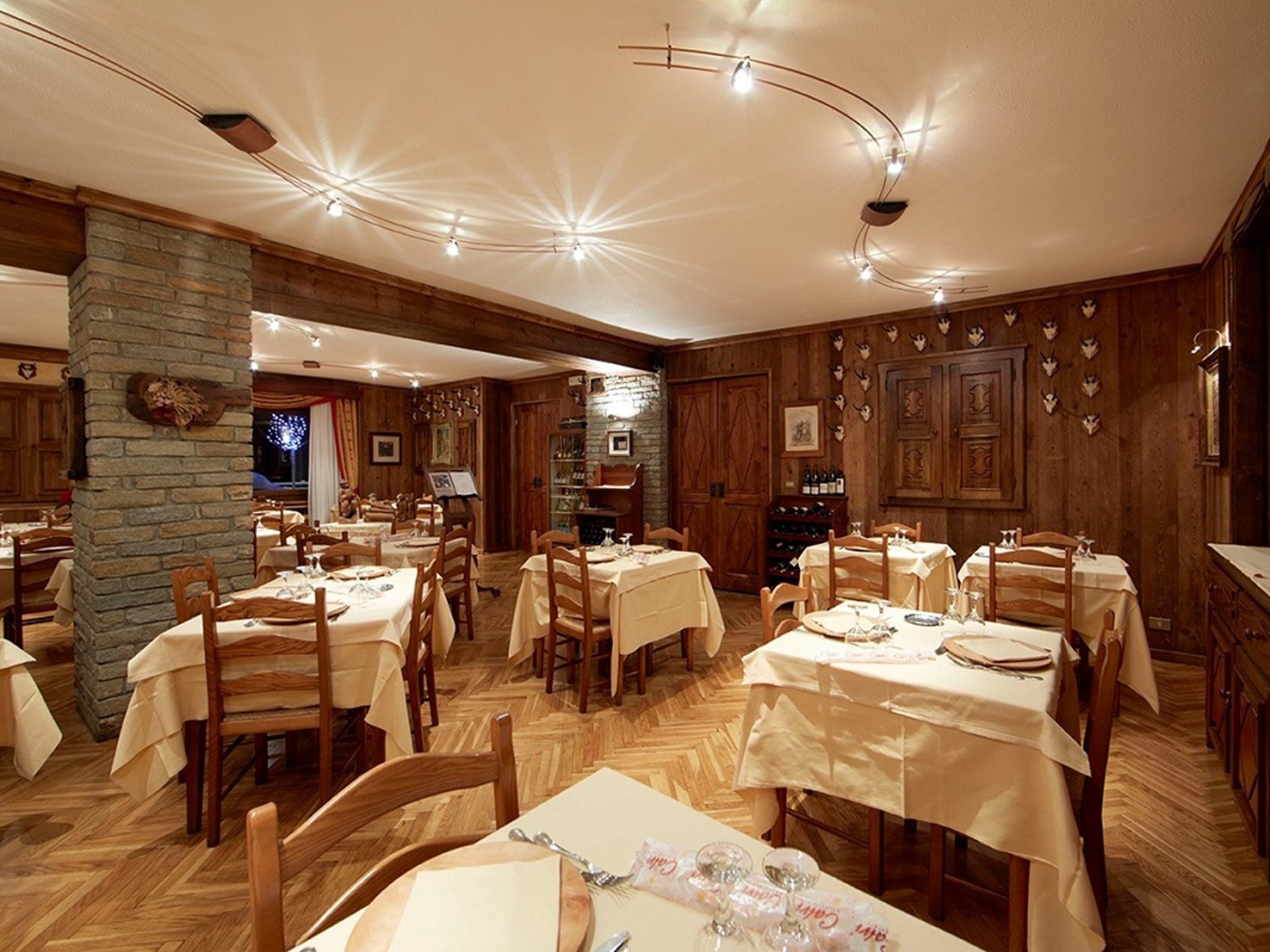 The cuisine, authentic and genuine, is supervised directly by the owners, every day it is possible to taste a typical dish of the Aosta Valley tradition; the dining room, large and bright, is characterized by countless hunting trophies, hence the name of the hotel.