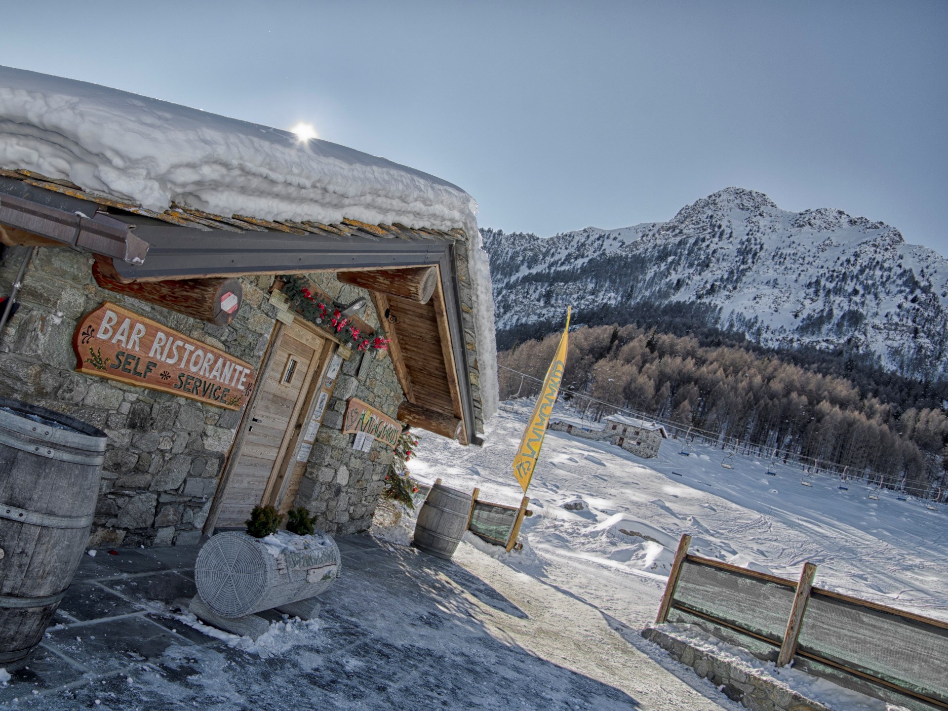 Das Ambiente im typischen familiären Bergstil bietet Gerichte der traditionellen Küche des Aostatales an, die auch auf der Terrasse oder im Garten verkostet werden können, während Sie die Landschaft bewundern, die das Restaurant umgibt.