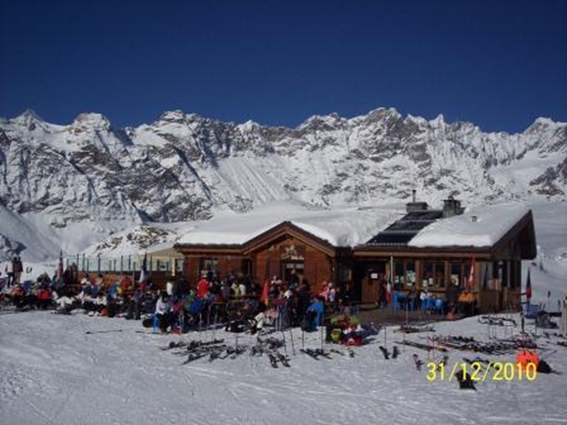Neu errichtetes Holz-Chalet mit Panoramablick auf die Umgebung, bei der Bergstation der Seilbahn von Valtournenche (Cime Bianche).