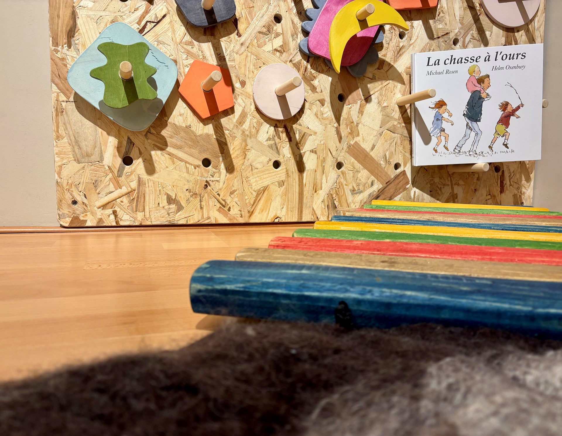 The illustrated book ‘La caccia dell'orso - Hunting for the bear’ allows young participants to venture along a sensory trail on the ground, to be experienced barefoot or crawling. An experience to sensitively discover the main raw materials of Valdostan handicrafts. An activity of manipulation and discovery of matter and the two sensations, of spatial exploration and linguistic sounds.