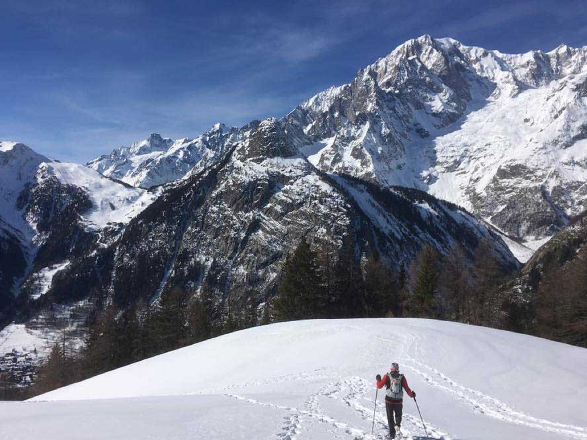 Snowshoe hike. Climb to the natural balcony of Mont Blanc with a certified guide on snowy terrain. Mandatory UGAM "Avalanche Risk Management" training course. Breathtaking views.