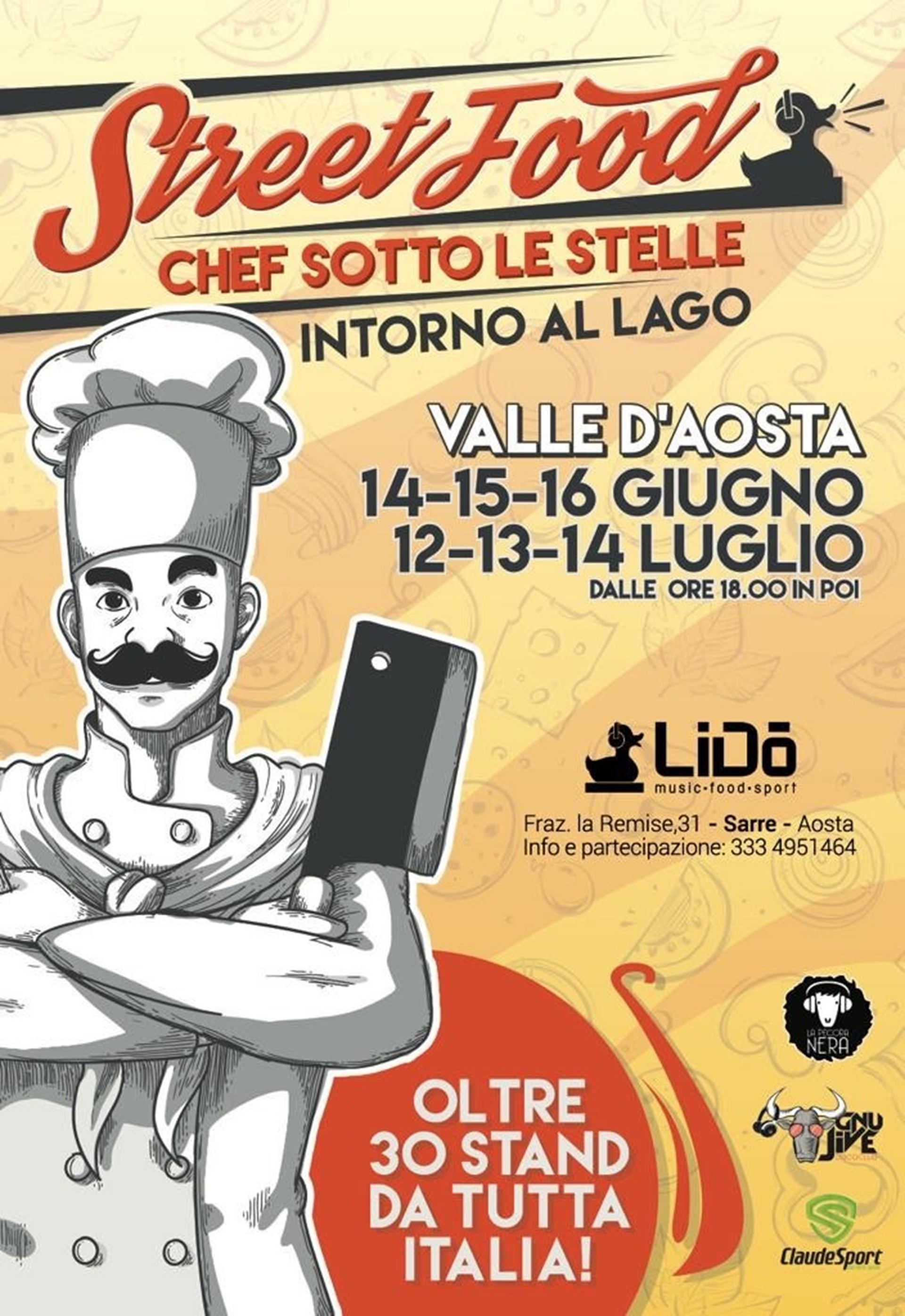Il lago farà da sfondo ad uno street food di livello nazionale con i migliori chef del cibo da strada d’ Italia (oltre 30 stand), giunto alla sua quinta edizione