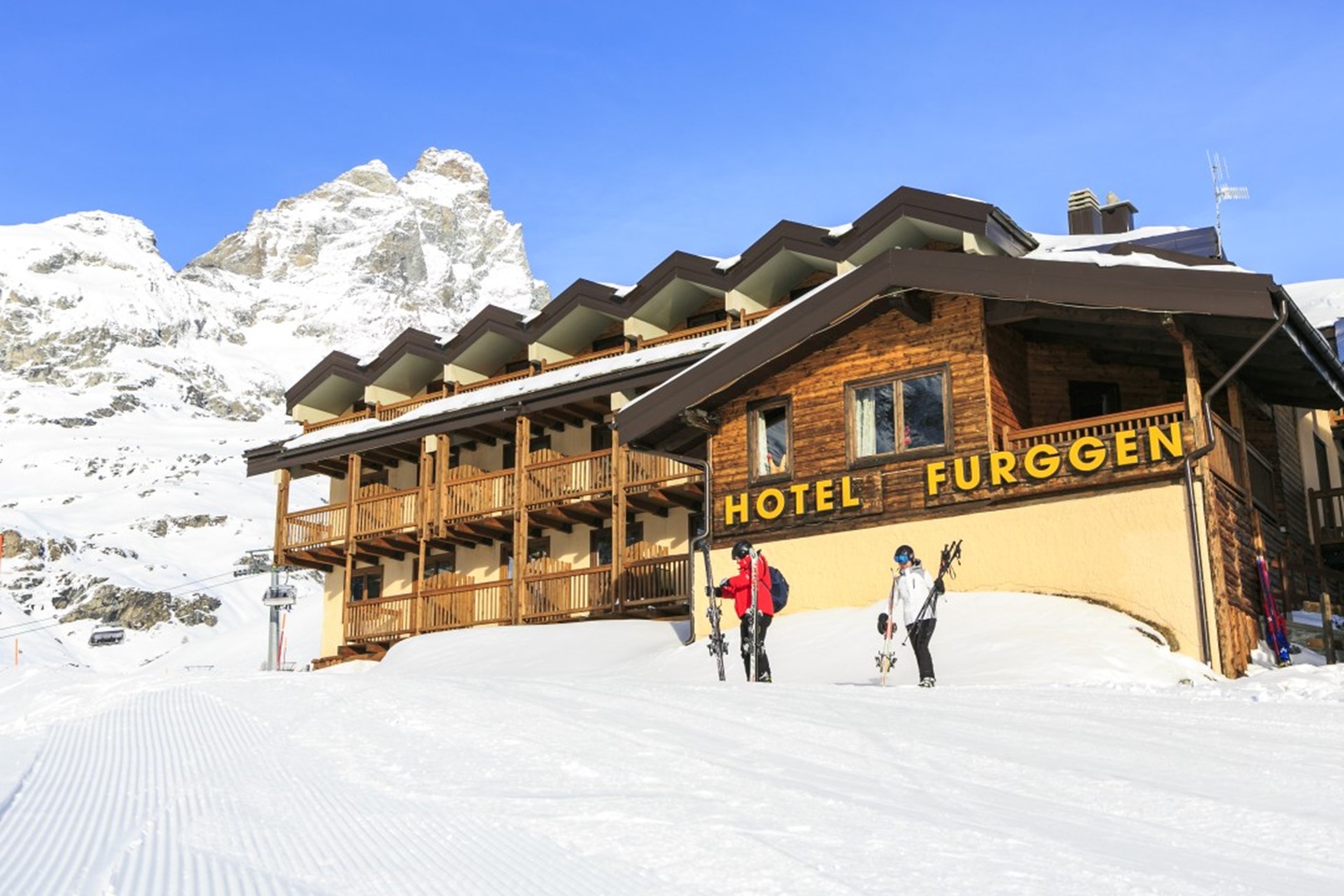 Das elegant eingerichtete Meublé Furggen befindet sich in einem kleinen Vorgebirge in der Ortschaft Cervinia. Die Skipiste Nr. 3 verläuft direkt am Haus vorbei. <br> Es ist etwa 800 Meter vom Ortszentrum von Cervinia entfernt; die 300 Meter entfernten Liftanlagen können vom Hotel aus direkt auf den Skiern erreicht werden.