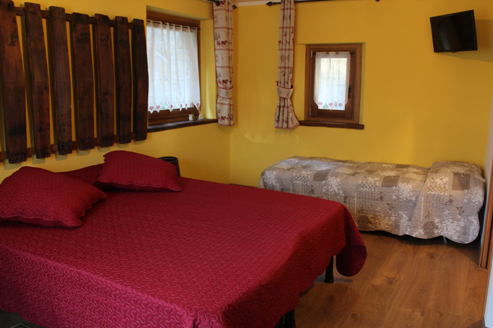 Die Skigebiete von Monte Rosa, Cervino Ski Paradise und Pila sind ebenso leicht zu erreichen, wie der Sitz der geschichtsträchtigen Thermaltradition und des Spiels in 6 km Entfernung in Saint-Vincent. Nicht weniger wichtig ist die Nähe der Mauthäuschen der Autobahn von Verres und Chatillon (circa 3 km). Wir bieten Ihnen fünf Doppelzimmer, die mit Komfort und Serviceleistungen wie Dusche, Fernsehgerät, bequemem öffentlichem Parkplatz sowie inbegriffenem Frühstück ausgestattet sind.