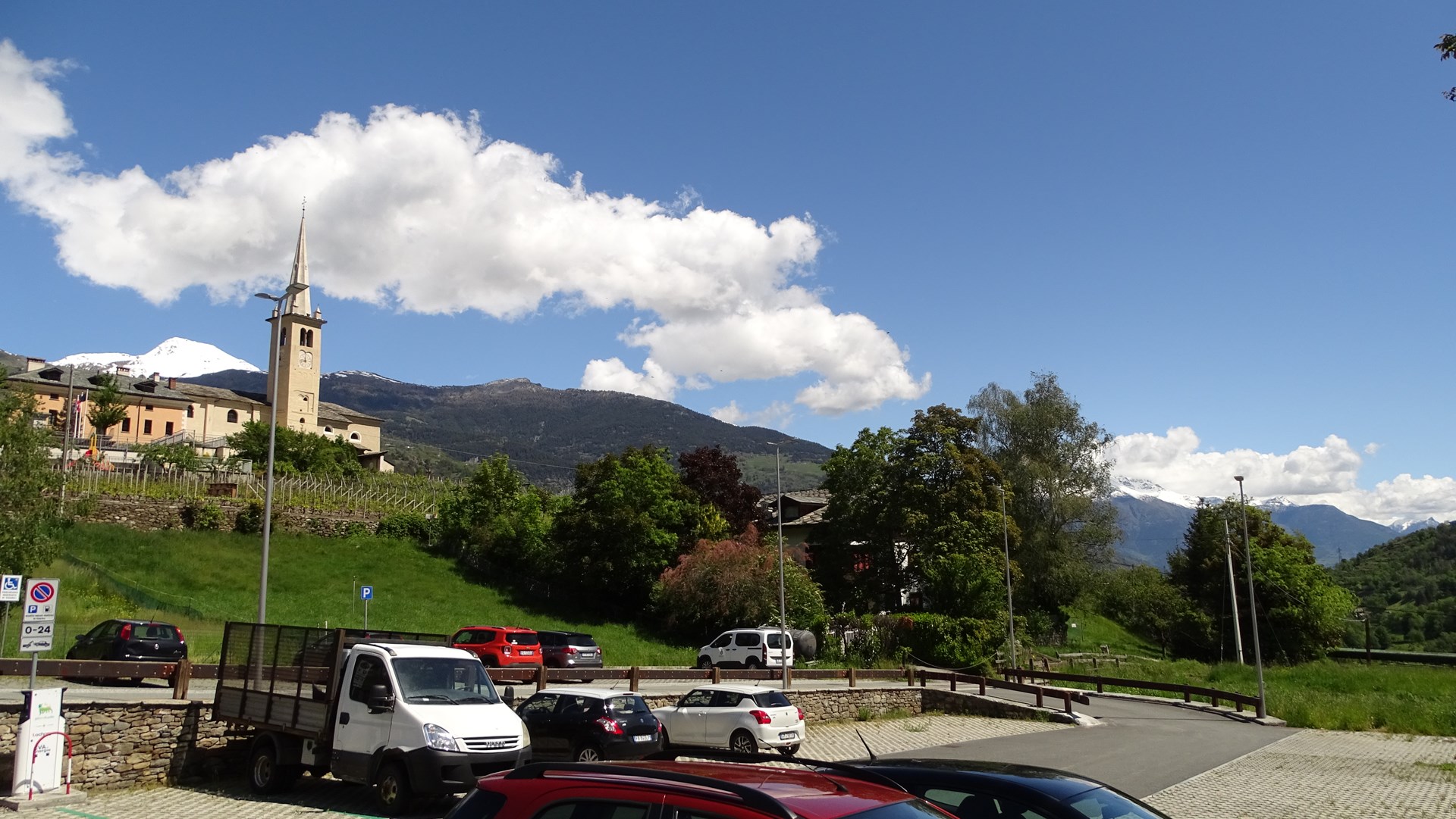 Disabled parking and recharge station. Close to the Maison Bruil, the castle of Introd