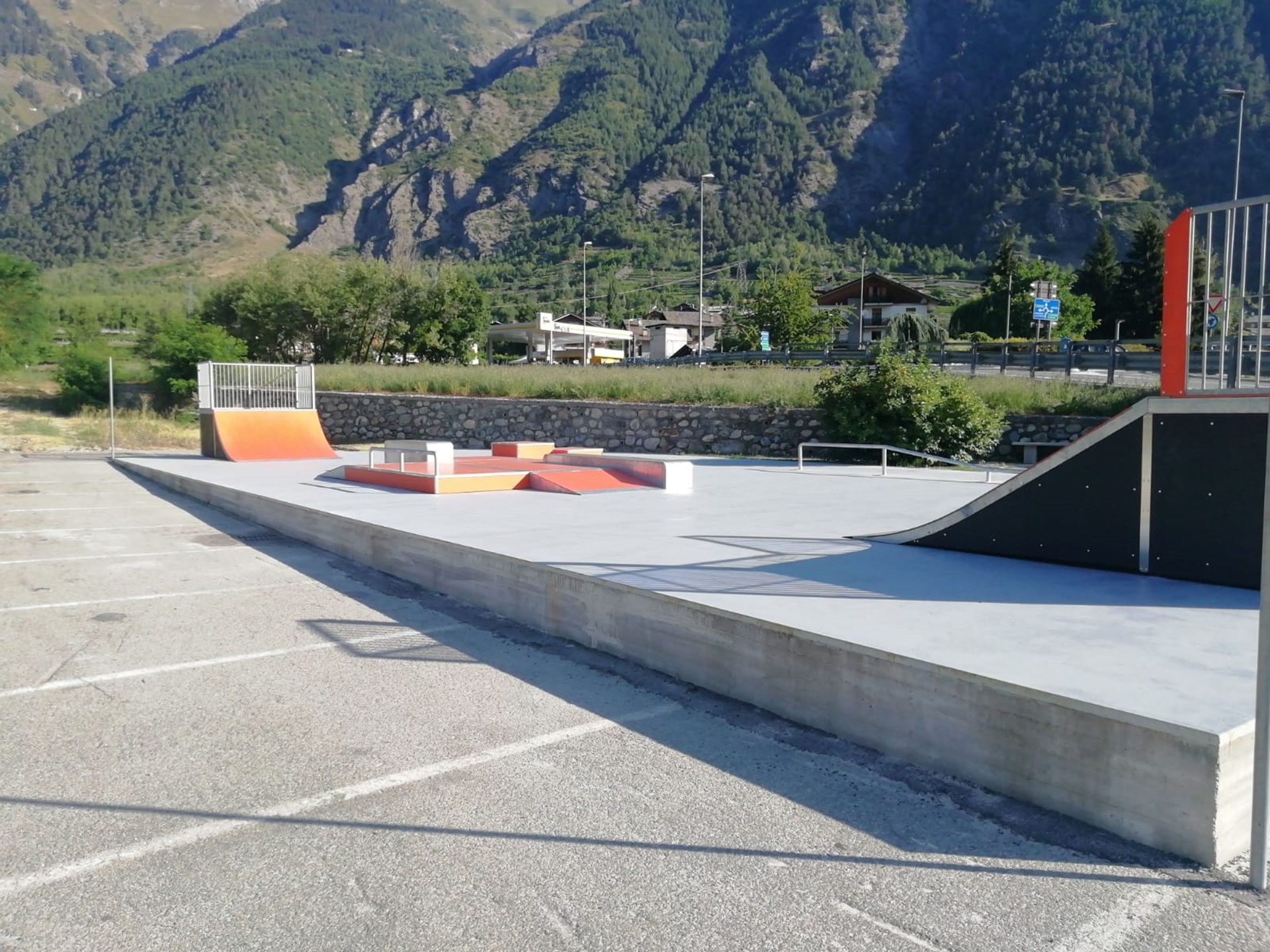 Skatepark mit freiem Zugang. Helm, Hand- und Knieschutz sind Pflicht.