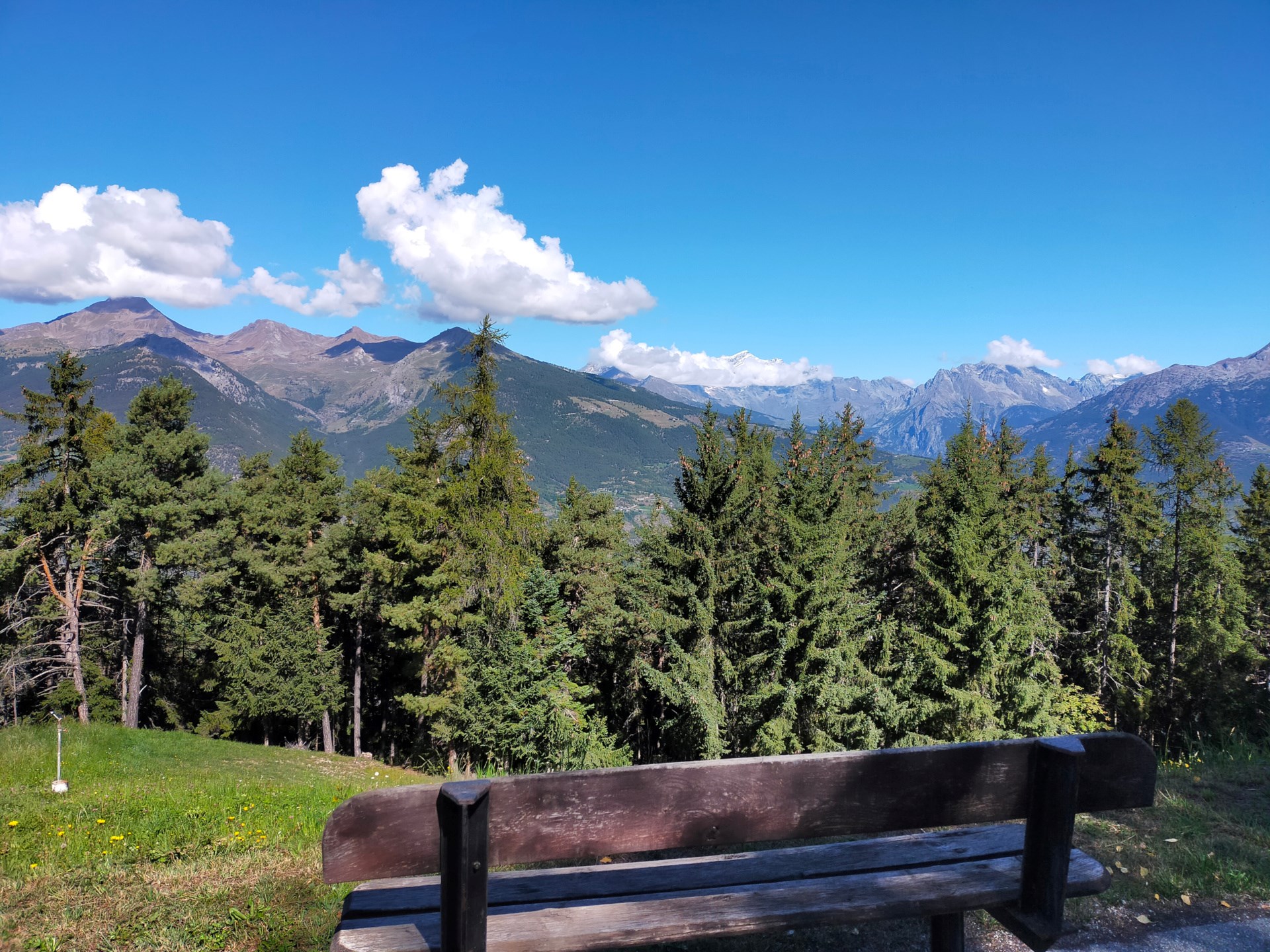 Die Wanderstrecke überquert einen schönen dichten und schattigen Nadelwald mit einigen Lichtungen. Von hier können Sie das Panorama in Richtung Zentrum des Aostatales sehen.
