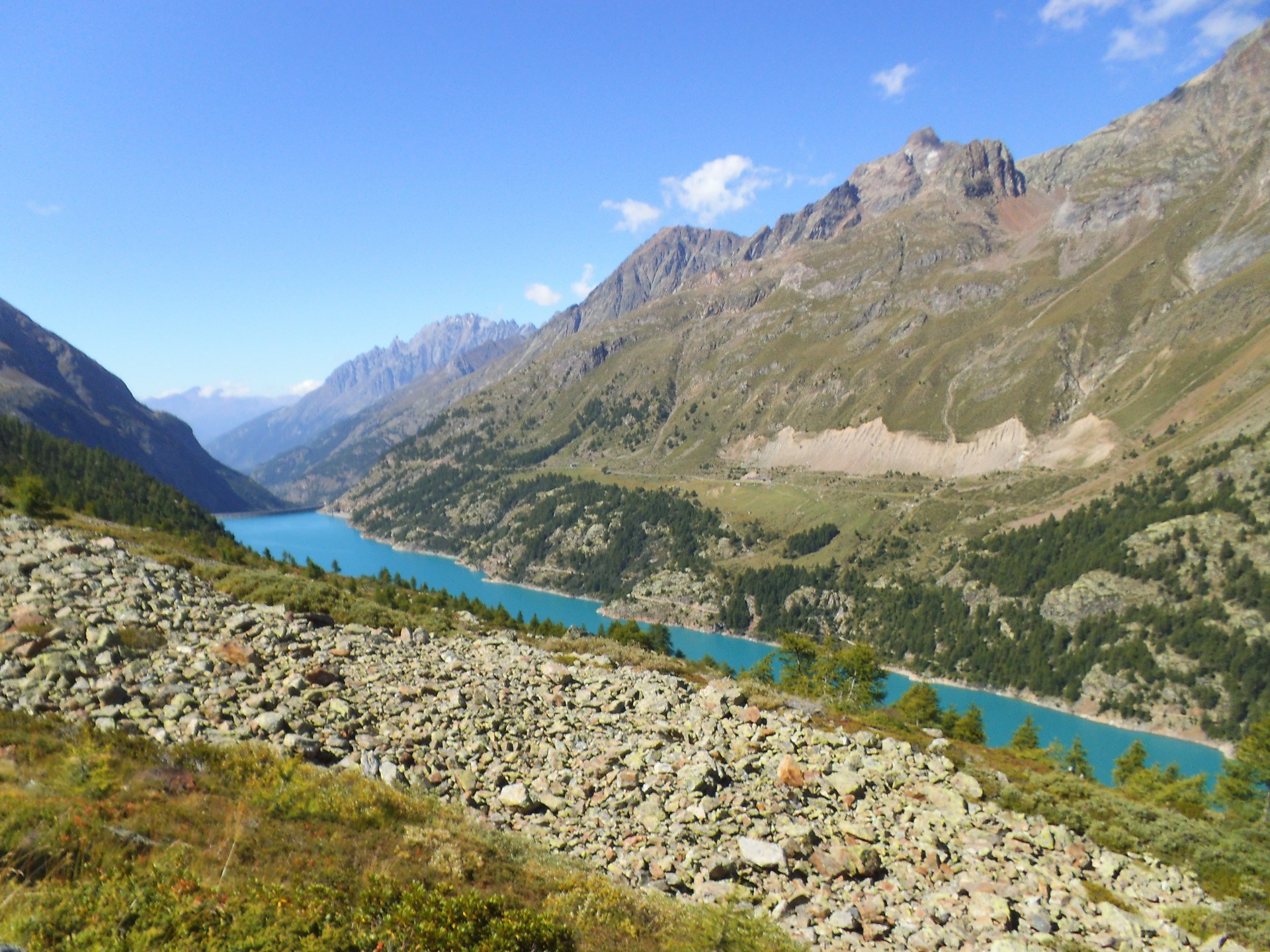 Am Platz vor dem Stausee von Place Moulin, in der Gemeinde Bionaz, begibt man sich auf den Weg, der am See entlang führend, die Berghütte Prarayer erreicht. Hinter der Berghütte schlägt man rechts an einer Gabelung den Weg Nr. 13 ein, überquert kurz darauf den Bach Buthier und wandert rechts weiter hinauf zu den Almen Plan de L’Arp und Mont-Charvin. Nun geht es auf halber Höhe oberhalb des Sees weiter (wobei man noch an der Alm Chalet Vieux vorbei kommt), bis man ins Tal von Livournéaz eindringt, an dessen Taleingang der gleichnamige See liegt.