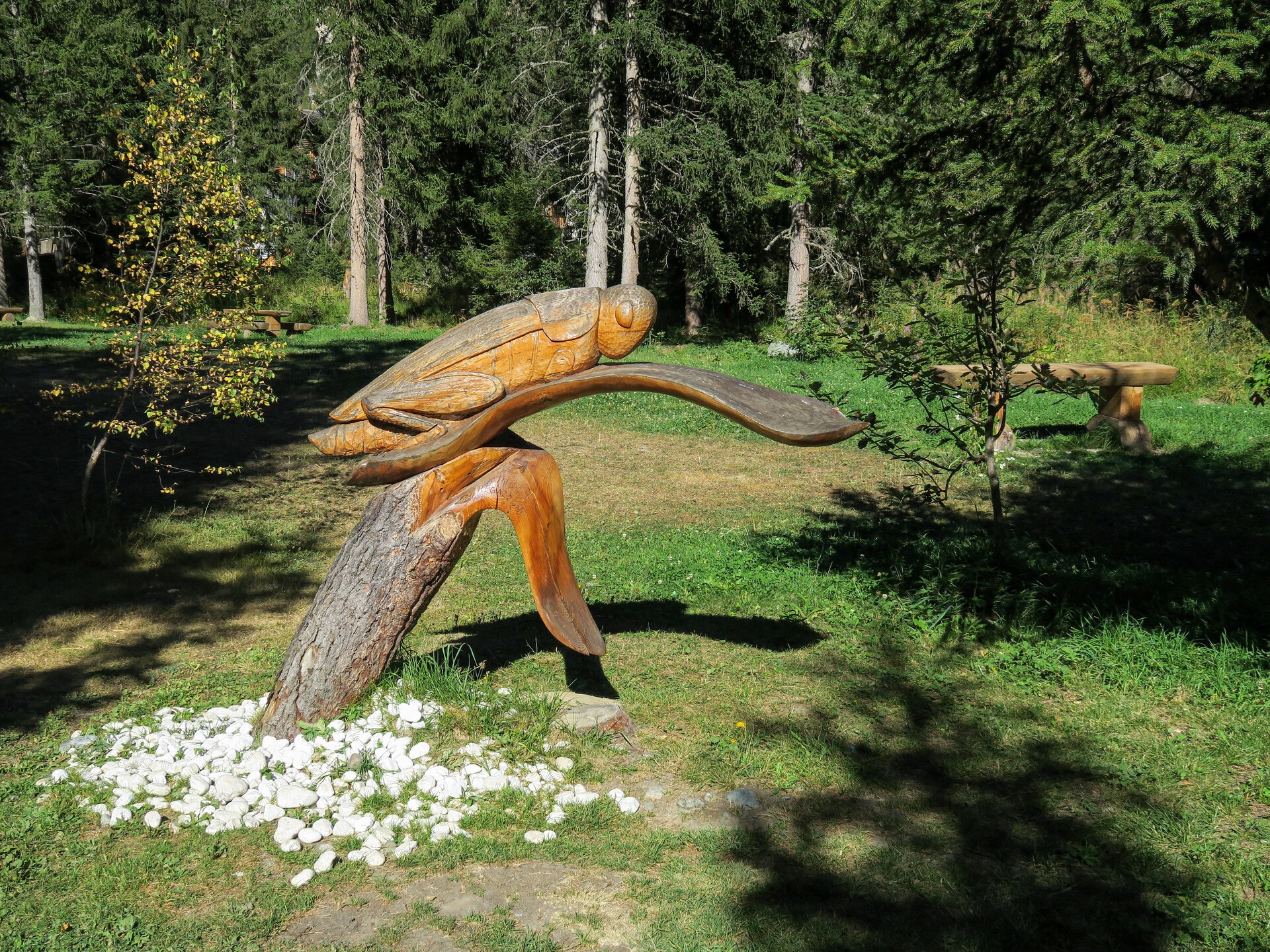 Unterwegs können Sie viele Holzstatuen bewundern, die von berühmten Künstlern des Aostatals geschnitzt wurden. Während der Veranstaltung Ayas Artisanat, die der typischen Handwerkskunst des Aostatals gewidmet ist, werden jedes Jahr neue Skulpturen geschaffen, bei denen die Künstler ihre Werke unter freiem Himmel schaffen.