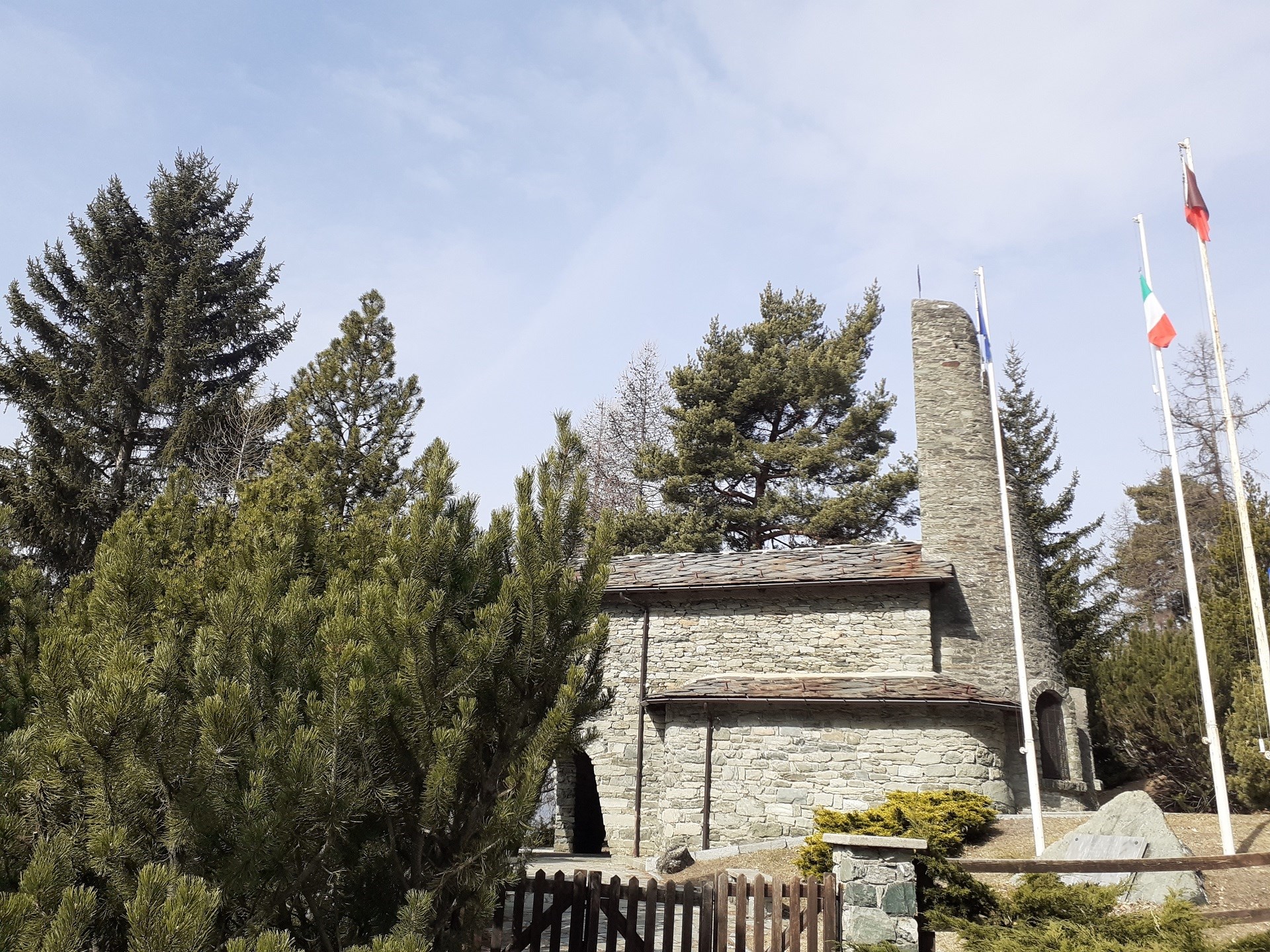 Die Bauarbeiten der Kapelle in Amay, die als Partisanendenkmal gedacht war, begannen 1951 und endeten 1962. Auftraggeber war Edoardo Page (1899-1977), ein Partisanenanführer, der aus einer der ältesten und patriarchalsten Familien von Saint-Vincent stammte. Ihm ging es darum, im angrenzenden Friedhof einige “junge Burschen”, die mit ihm gekämpft hatten, auch nach ihrem Tod zu vereinen. An der Fassade ist eine große Steinplatte mit der Inschrift “Ai caduti per la libertà 9-9-1943 / 25-4-1945” (An die für den Frieden Gefallenen 9.9.1943 / 25.4.1945) angebracht.