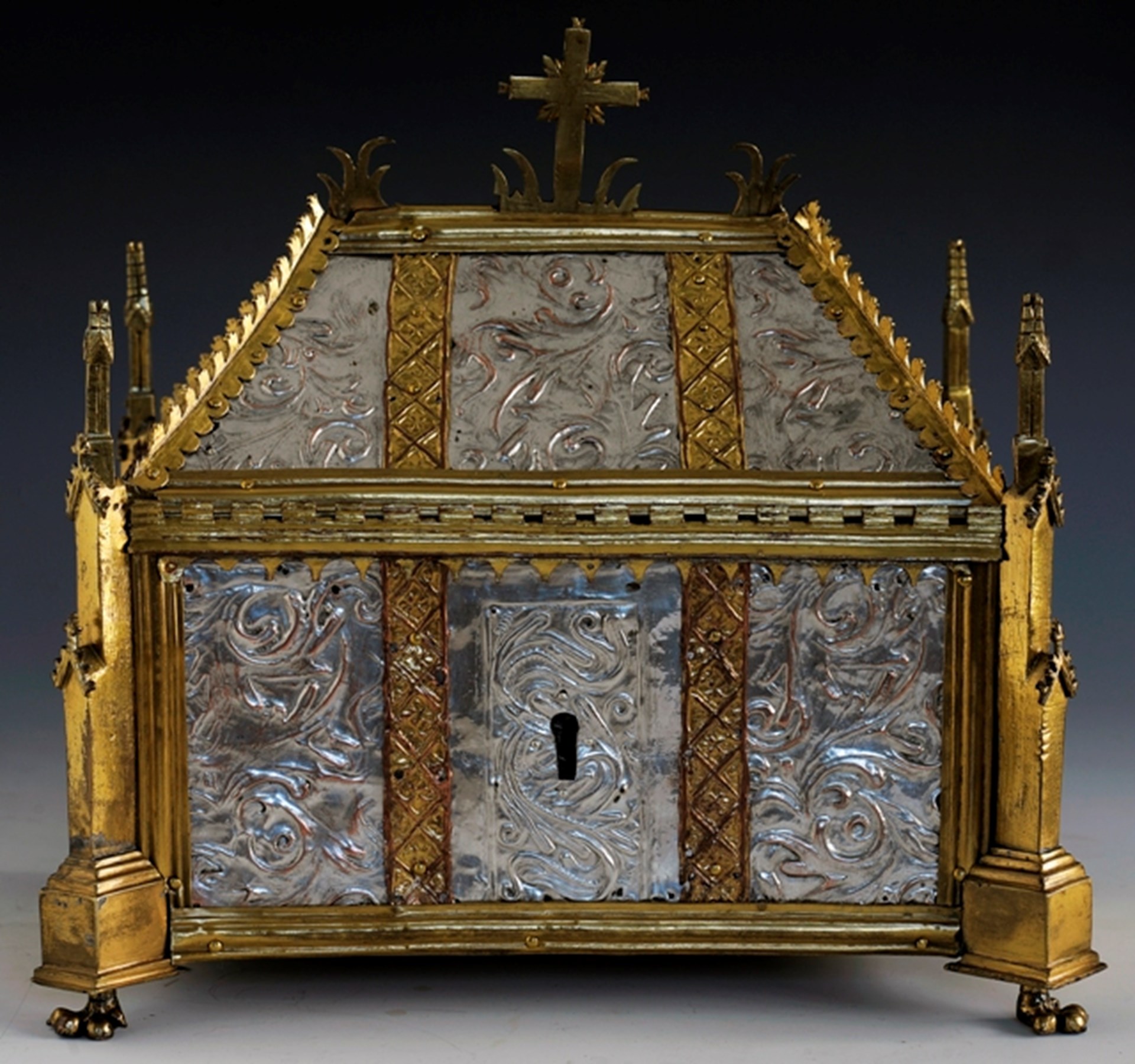 Das Reliquiar stammt aus der Mitte des 15. Jahrhunderts und ist mit einem Pflanzenblättermotiv verziert, das an dem Reliquar von San Grato in der Kathedrale von Aosta bewahrt, erinnert.