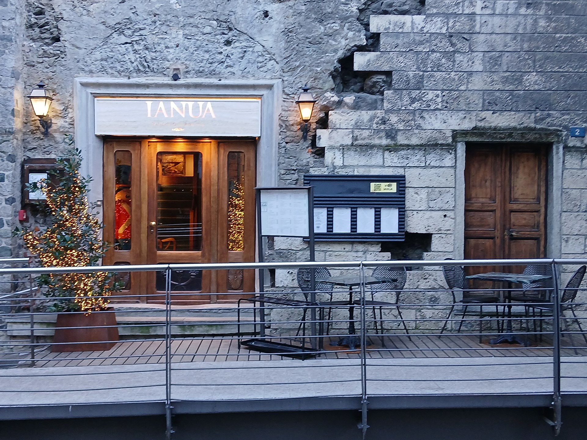 The restaurant is located in the historic centre of Aosta, in the ancient main access to the city of Augusta Praetoria, the Porta Pretoria. It offers a cuisine based on tradition and on the use of local products. The menu is typical of Aosta Valley and is prepared with products that have obtained the protected designation of origin (PDO)