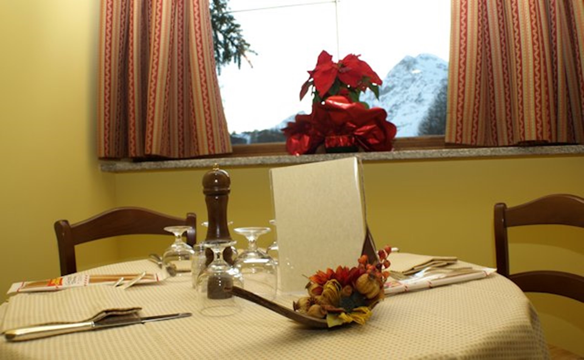 from game to lake fish, from porcini mushrooms to truffles and fried flowers and vegetables, the Aosta Valley steak and to finish the meal with sweetness, a wide choice of homemade desserts.