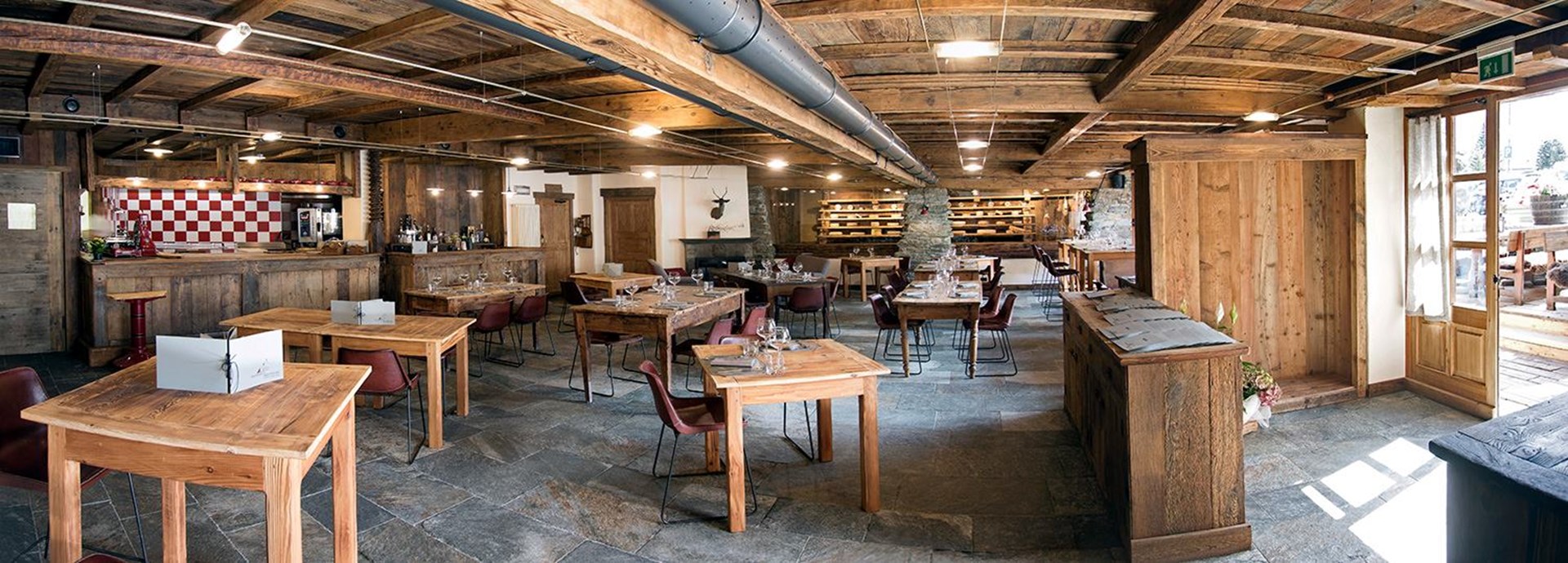 The restaurant is in the center of Champoluc, with its wooden and stoned alpine interior, it offers tasty and fine dishes and inviting aperitifs.