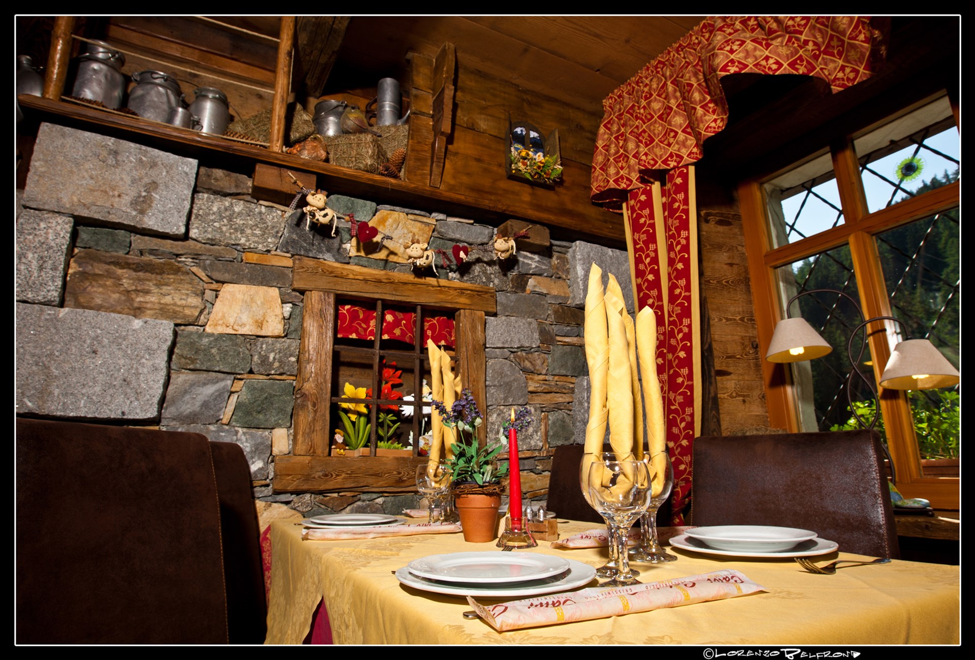 Established in the 1950s as an inn for smugglers, who crossed the Col Serena from Switzerland, the Jolie Bergère has now become a historic place with an increasingly typical and characteristic trait. Mirror of the Aosta Valley tradition, it stands out for its innovative but typically genuine cuisine and for its intimate and familiar atmosphere. Characteristic of the dishes is the use of local products and wild herbs, directly chosen and collected by the Chef.