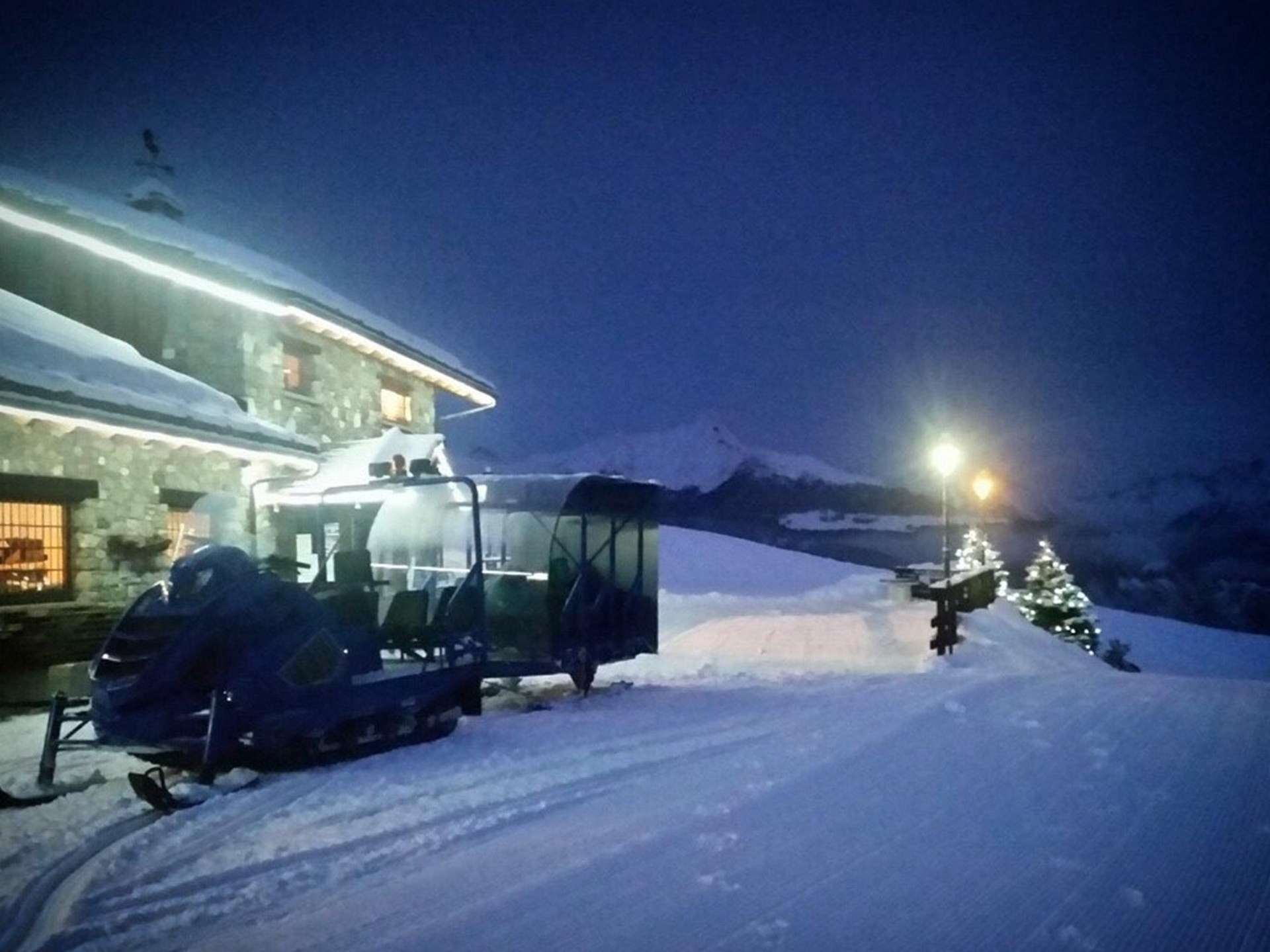 From the town center of Torgnon, continue for around 4km until reaching Plan Prorion (Camper stop area) where the snowmobile will wait for the couples to reach the restaurant after a 5-minute climb.