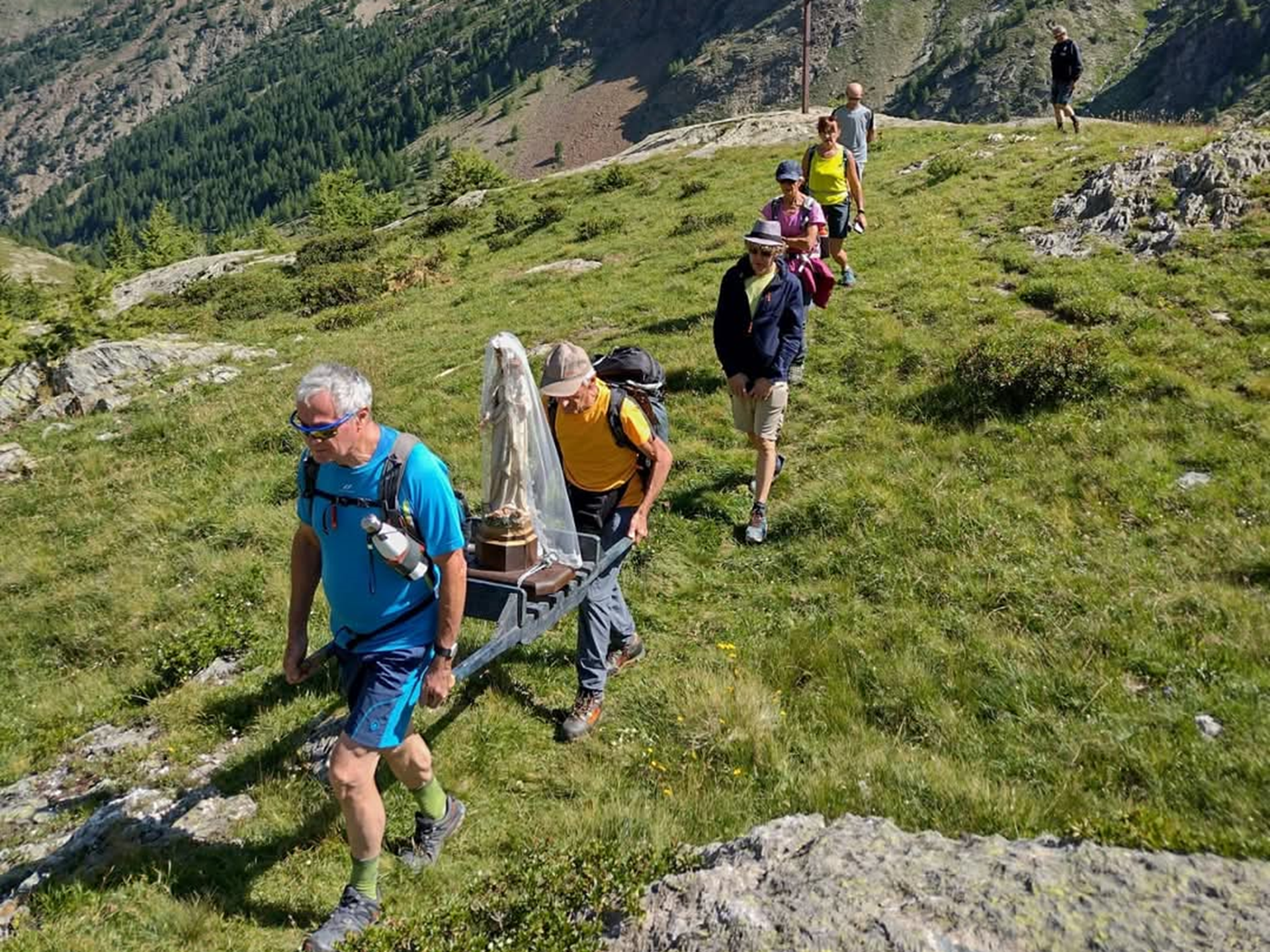 From the bridge, continue along the path indicated with trail marker nr. 4 until the Tsa di Verdonaz mountain pasture, where a brief turn.off on the right leads to the chapel of the “Madonna delle Nevi” (m 2317).