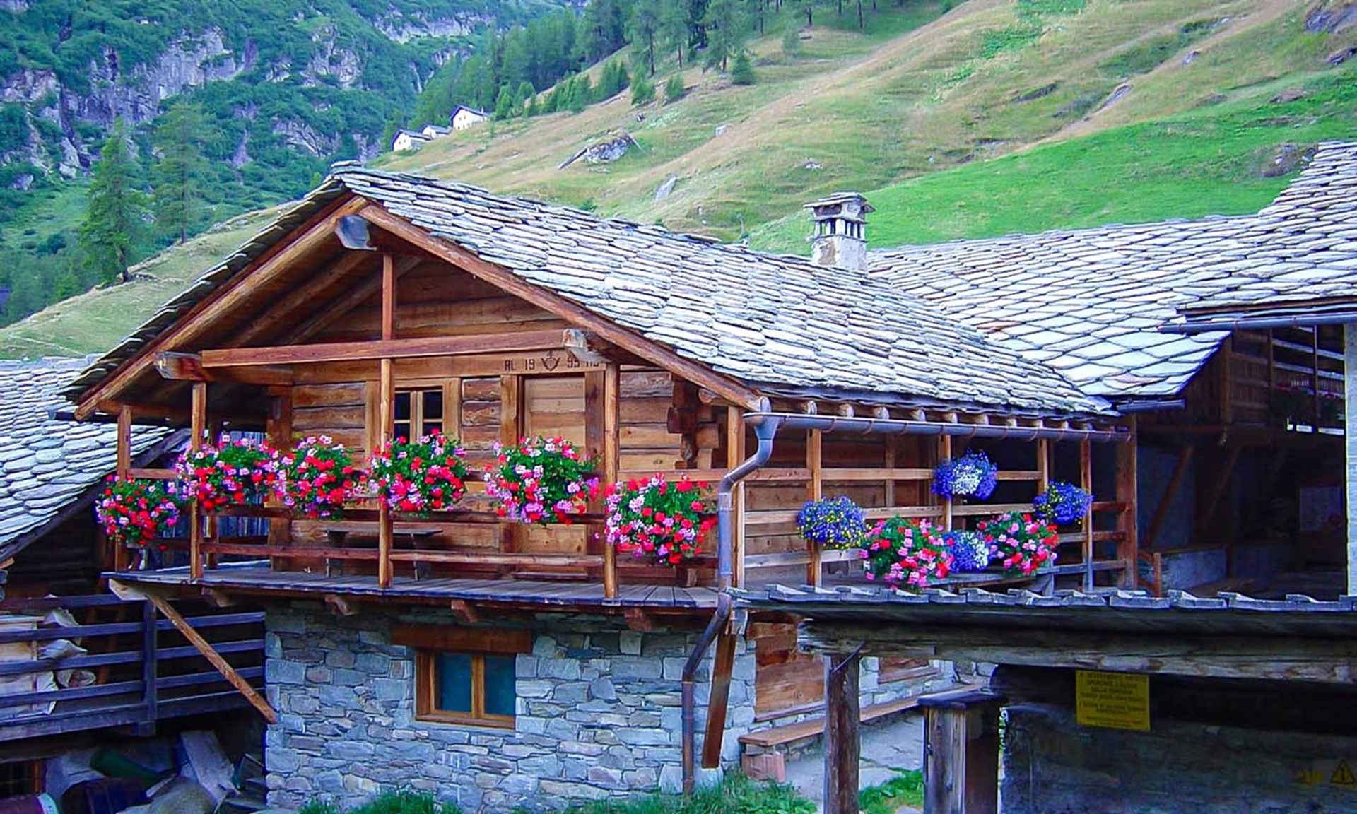 The Alpenzu Grande mountain hut is a distinctive building situated at 1,779 m in Gressoney-Saint-Jean, nestled within an ancient Walser village that preserves its traditional stone and timber houses, the stadel (wood and stone structures that served as barns), the village oven, the fountain and the chapel; it is surrounded by pastures, meadows and what were once fields of rye, barley, oats and potatoes.