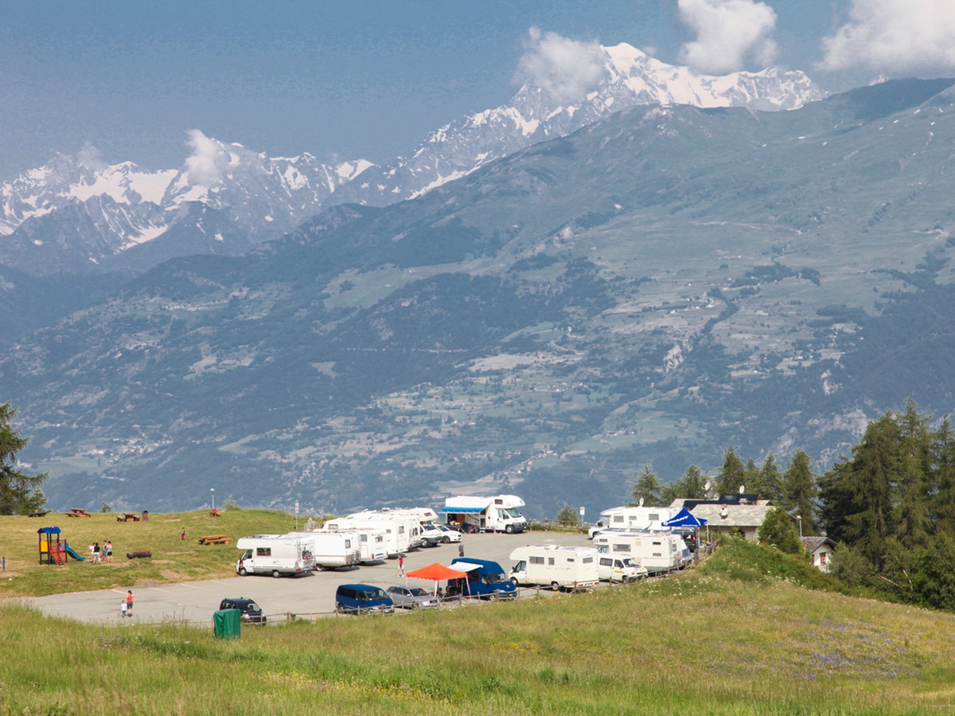 • Dedicated Motorhome Parking Spaces in carpark in front of the Hotel Chalet des Alpes