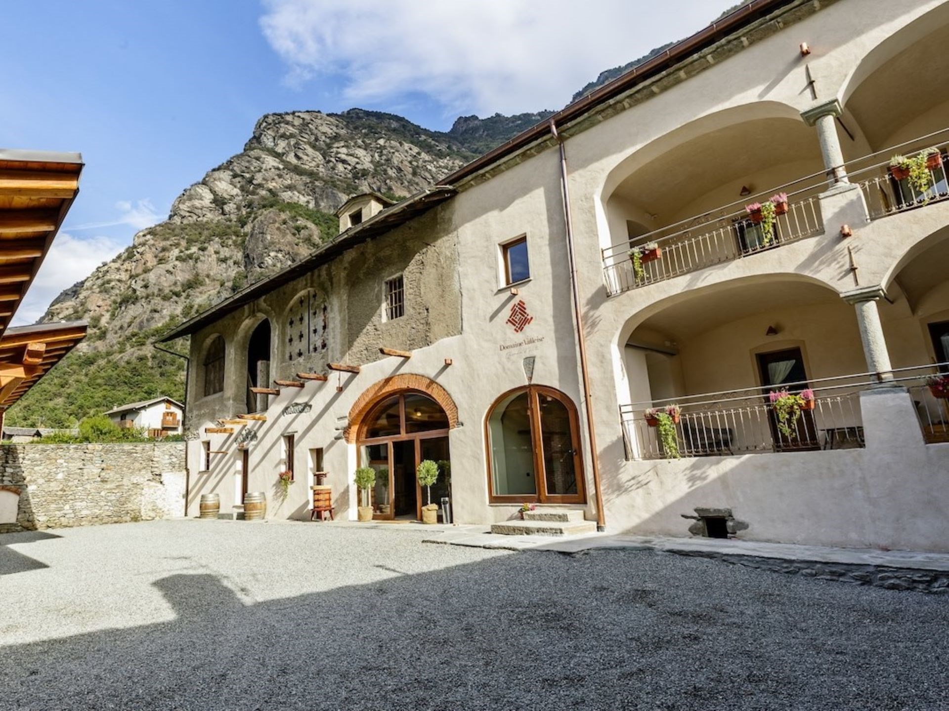 Domaine Valleise is located in the heart of Arnad, where vineyards stretch out at the foot of the mountains and the landscape alternates between deep silence and bright light. The old family building, now restored, retains the solidity of the original stones and the warmth of natural materials, integrated with contemporary comforts designed for a slow and harmonious stay.