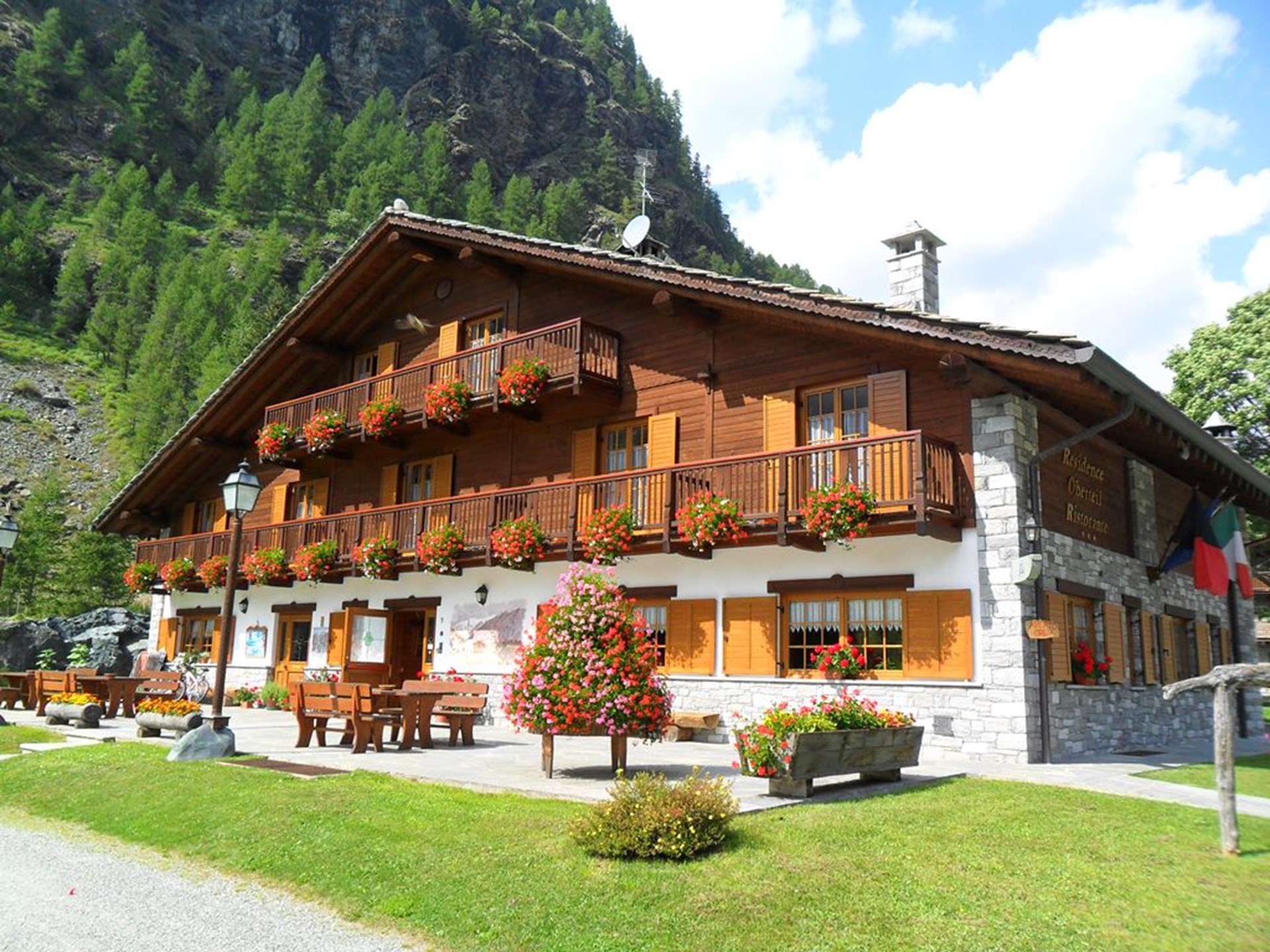 The Oberteil Residential Complex is situated at the entrance to the small town of Gressoney-La-Trinité, just a few metres from the Monterosa Ski resort ski-lift pick-up point.