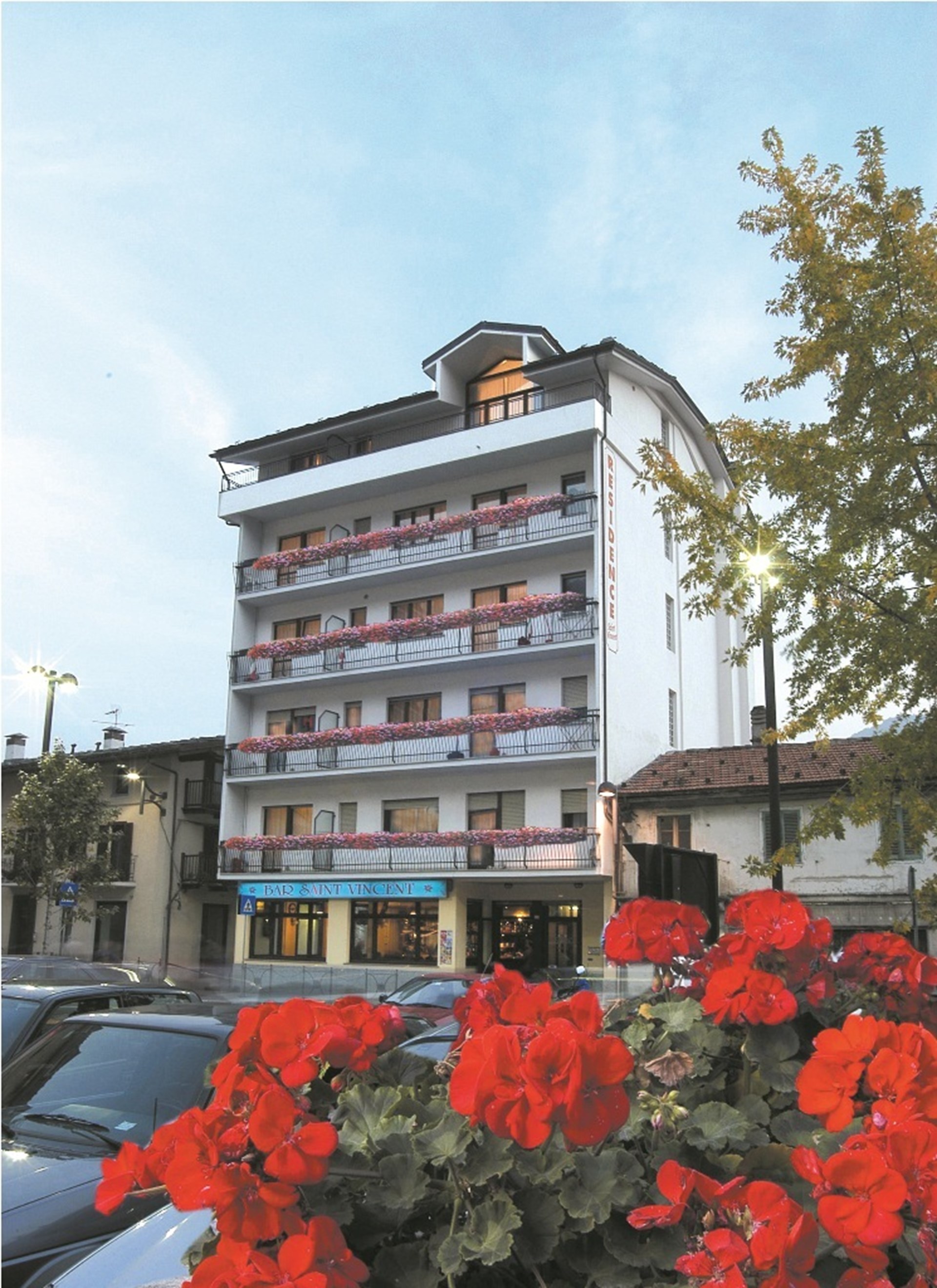 The residence is located in Saint-Vincent, in the heart of Valle d’ Aosta, at 575 meters above sea level. Fifteen housing units, bed-sitters and two-roomed flats, all with a view of our wonderful mountains. We are in the center of the village, a few steps away from the historic town center, the Casino de la Vallée, and the new Spas. Our guests also have the opportunity to use our cafe, directly connected to the Residence, for breakfast or a snack.